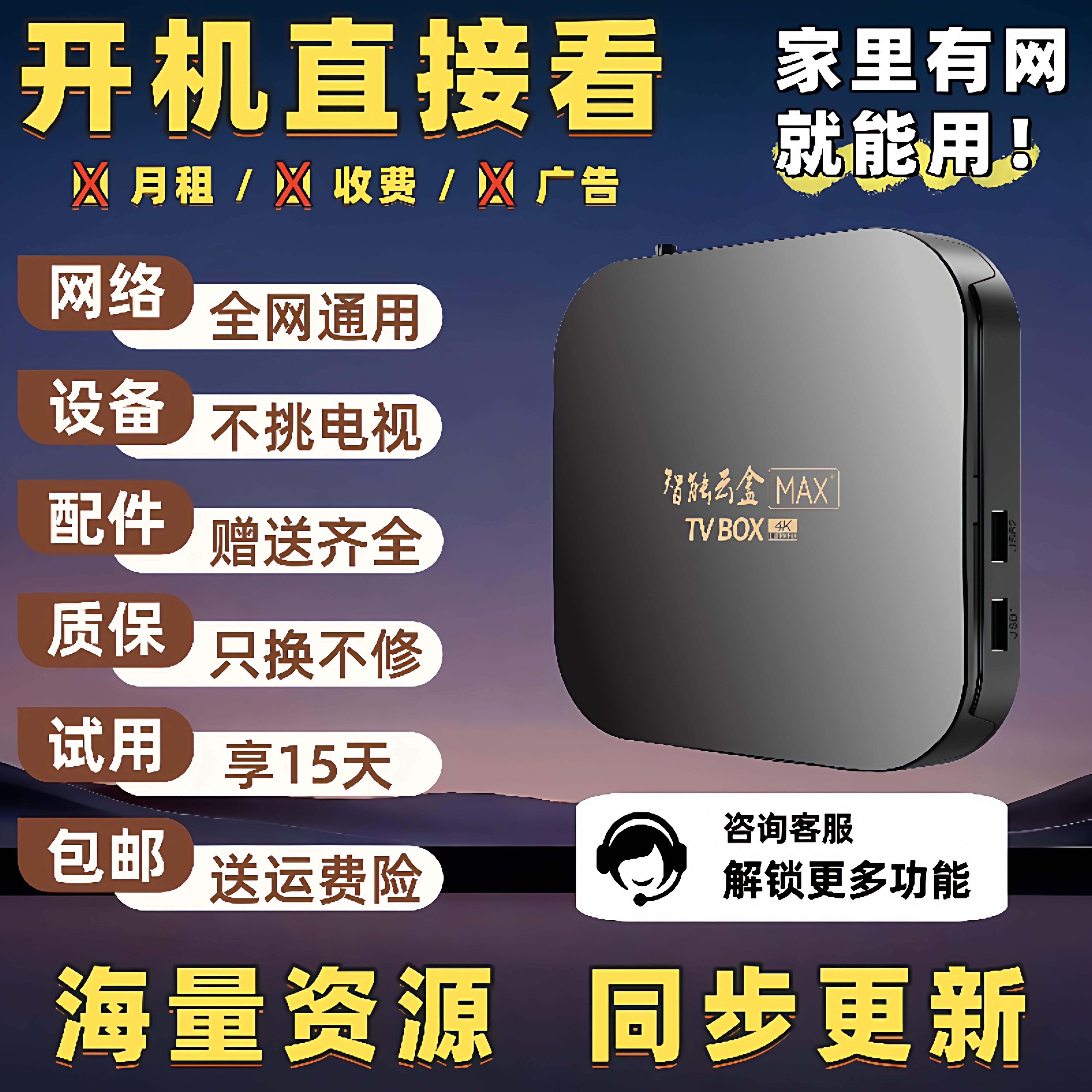智能网络电视机顶盒开机无广wifi超高清影视电视盒子