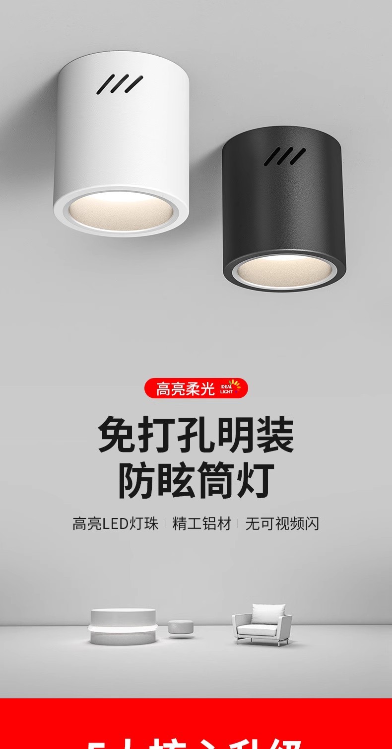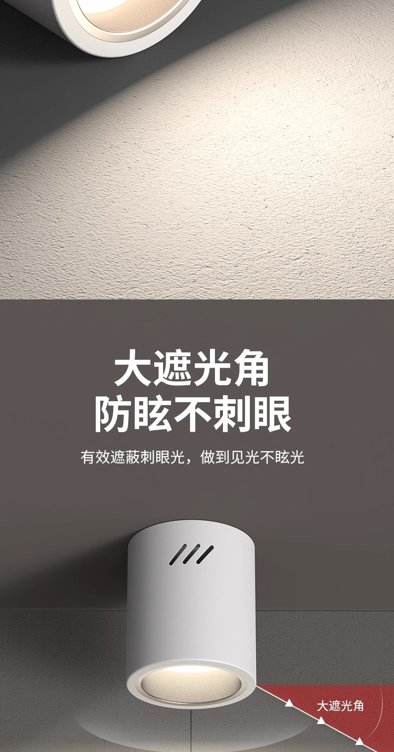 led明装筒灯防眩光圆形外置免打孔照明商用无吊顶吸顶式4寸5寸6寸