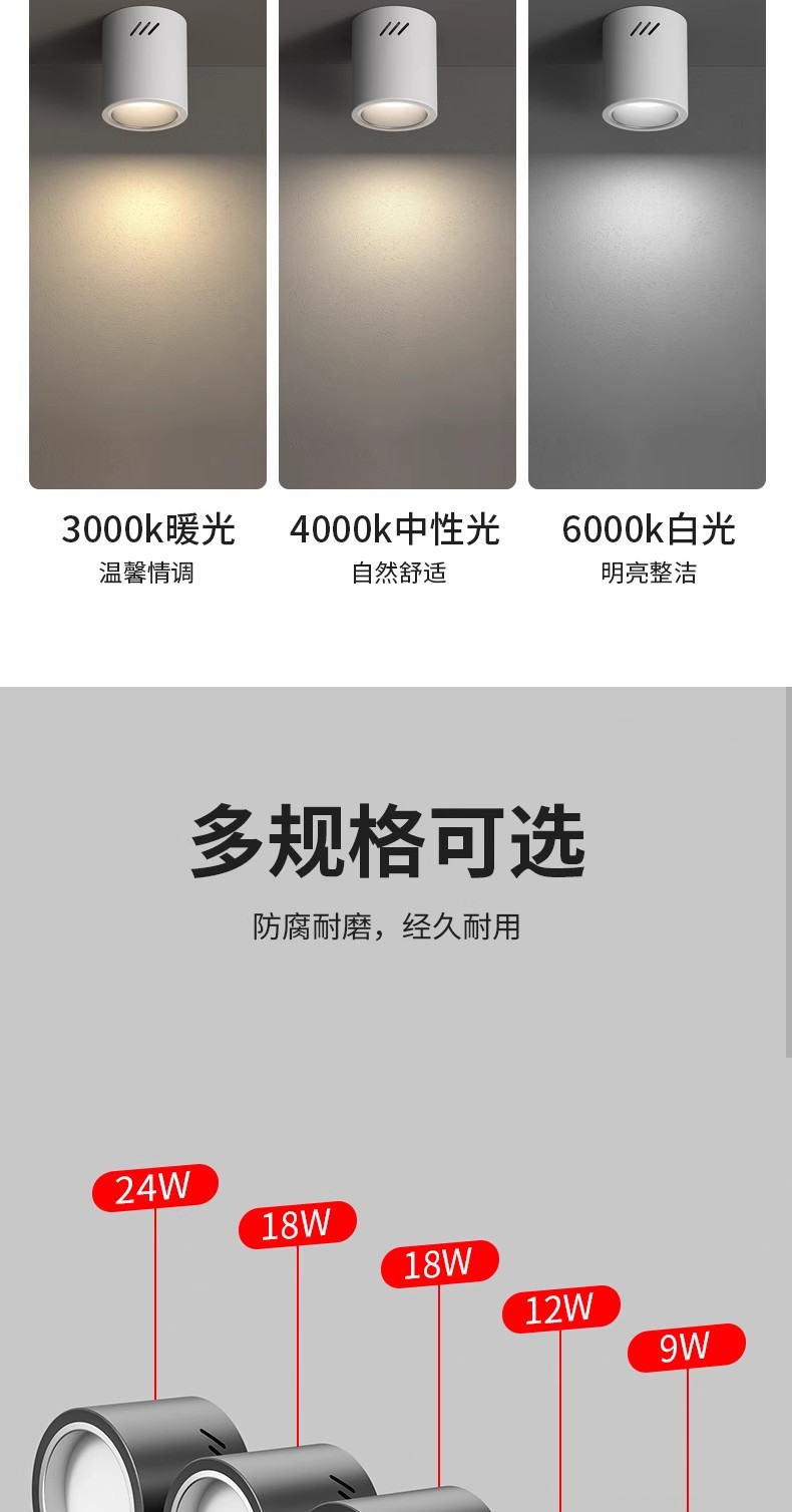 灯光颜色 黑壳-明装防眩-3.5寸-9W白光,黑壳-明装防眩-3.5寸-9W暖光,黑壳-明装防眩-3.5寸-9W中性光,白壳-明装防眩-3.5寸-9W白光,白壳-明装防眩-3.5寸-9W暖光,白壳-明装防眩-3.5寸-9W中性光,黑壳-明装防眩-4寸-12W白光,黑壳-明装防眩-4寸-12W暖光,黑壳-明装防眩-4寸-12W中性光,白壳-明装防眩-4寸-12W白光,白壳-明装防眩-4寸-12W暖光,白壳-明装防眩-4寸-12W中性光,黑壳-明装防眩-5寸-15W白光,黑壳-明装防眩-5寸-15W暖光,黑壳-明装防眩-5寸-15W中性光,白壳-明装防眩-5寸-15W白光,白壳-明装防眩-5寸-15W暖光,白壳-明装防眩-5寸-15W中性光,黑壳-明装防眩-6寸-18W白光,黑壳-明装防眩-6寸-18W暖光,黑壳-明装防眩-6寸-18W中性光,白壳-明装防眩-6寸-18W白光,白壳-明装防眩-6寸-18W暖光,白壳-明装防眩-6寸-18W中性光,黑壳-明装防眩-8寸-24W白光,黑壳-明装防眩-8寸-24W暖光,黑壳-明装防眩-8寸-24W中性光,白壳-明装防眩-8寸-24W白光,白壳-明装防眩-8寸-24W暖光,白壳-明装防眩-8寸-24W中性光