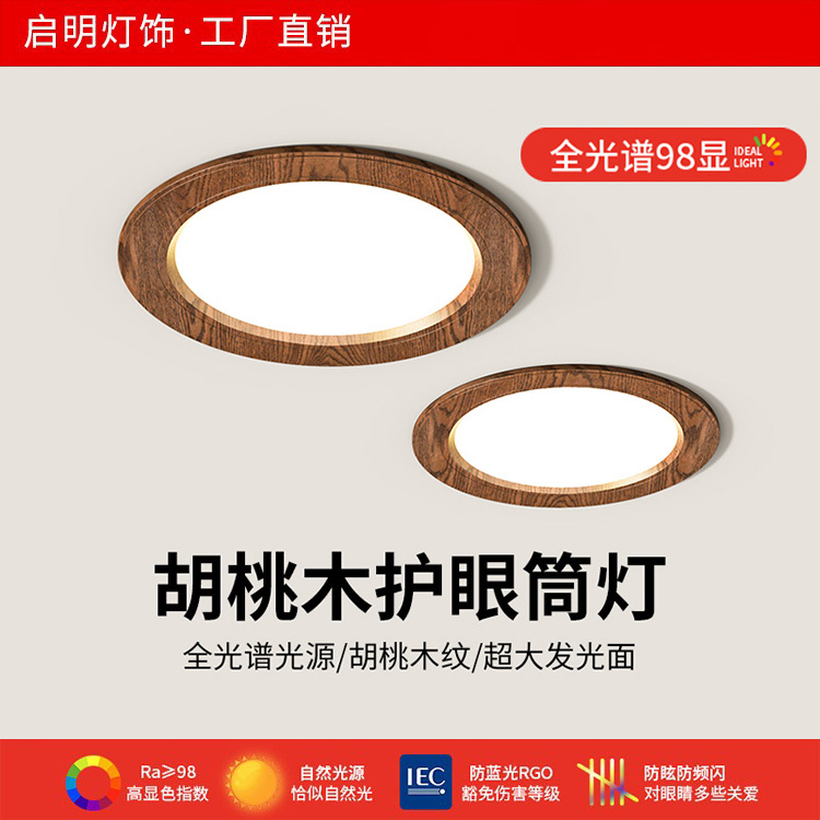胡桃木纹筒灯led嵌入式客厅吊顶家用天花灯中古风复古三色孔灯75