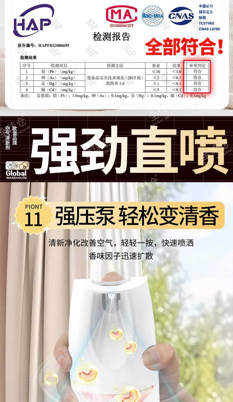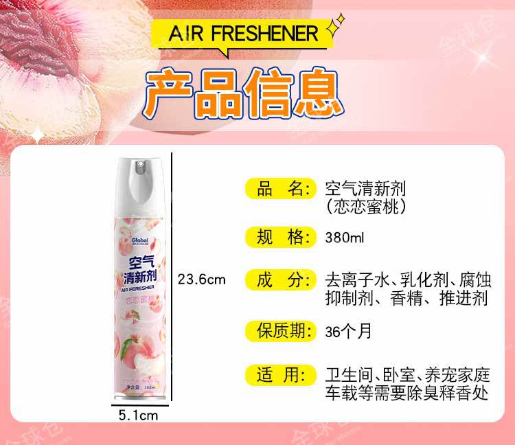 全球仓空气清新剂喷雾卧室持久留香室内卫生间厕所除臭去异味神器