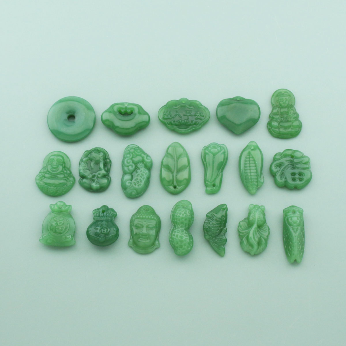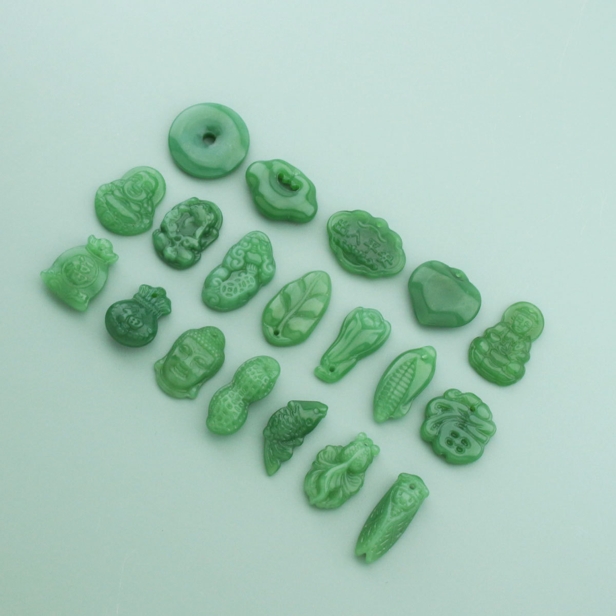 颜色 平安扣(尺寸:28x28mm),钱袋(尺寸:30x23mm),金鱼(尺寸:28x17mm),蝉(尺寸:37x16mm),貔貅(尺寸:37x21mm),花生(尺寸:36x18mm),钱袋(尺寸:25x19mm),平安锁(尺寸:30x22mm),福(尺寸:23x23mm),白菜(尺寸:29x15mm),弥勒佛(尺寸:30x28mm),观音(尺寸:30x20mm),祥云(尺寸:20x28mm),鲤鱼(尺寸:29x13mm),玉米(尺寸:30x12mm),如来(尺寸:32x22mm),树叶(尺寸:36x22mm)