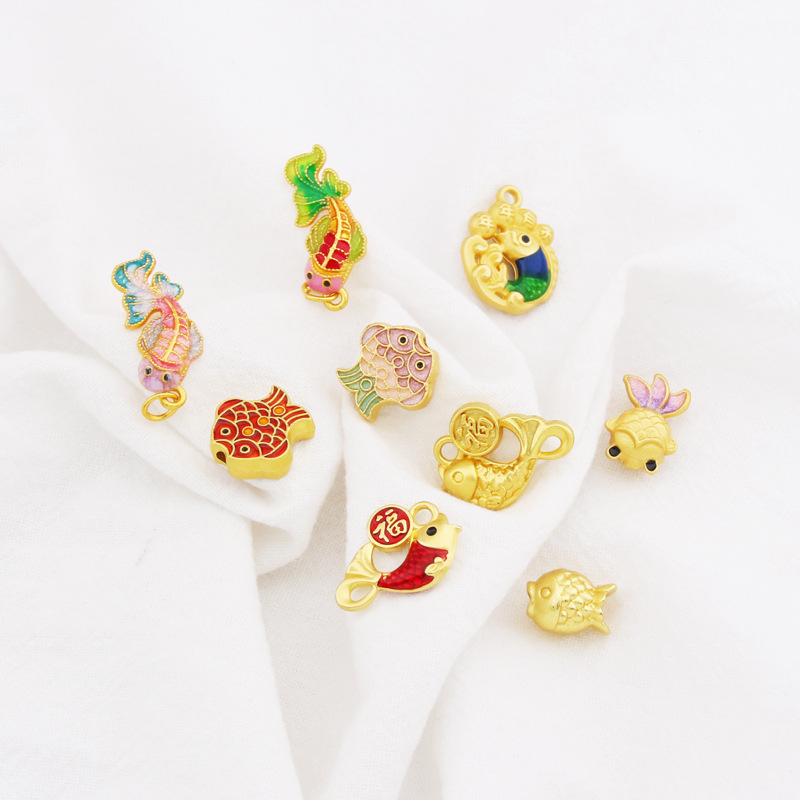 古法哑金滴油混装紅魚錦鯉紅紐手飾りブレスレットビーズアクセサリーペンダント