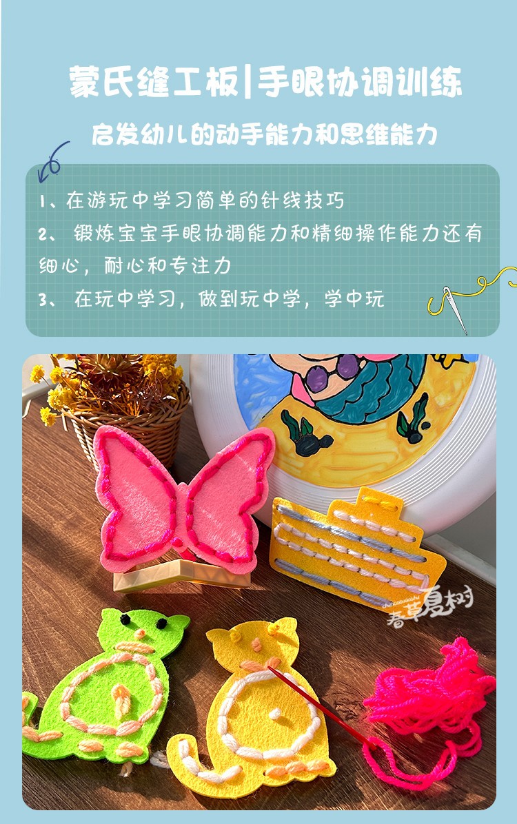 蒙氏缝工板diy穿线刺绣儿童手工幼儿园中大班编织区域材料包自制