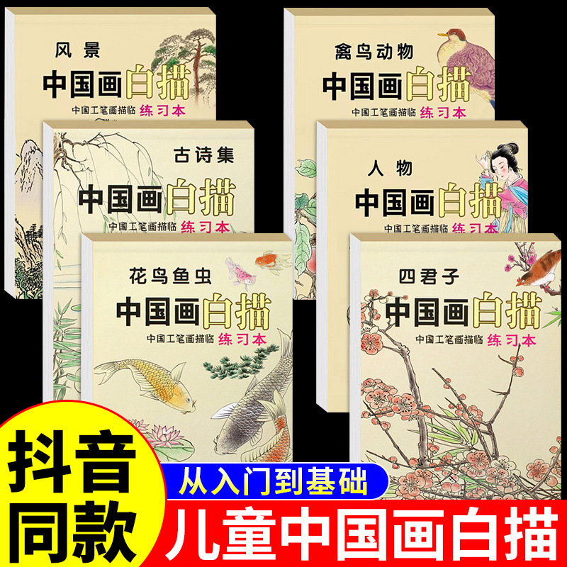 儿童中国画白描临摹画入门到精通国画练习册小学生控笔练习涂色本