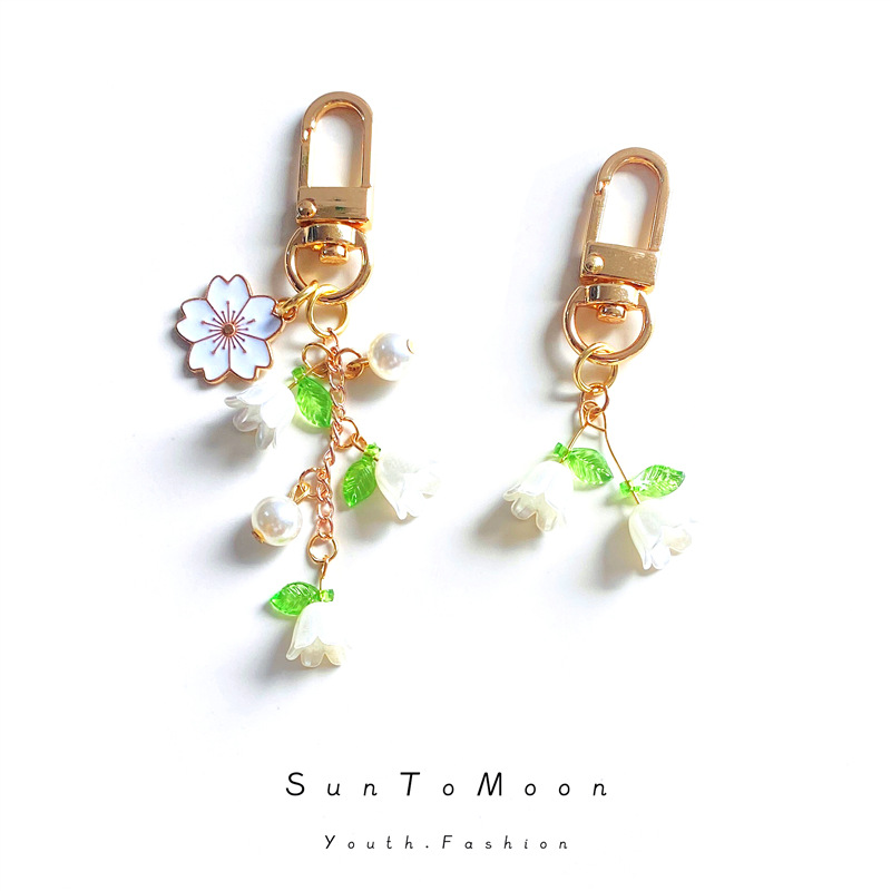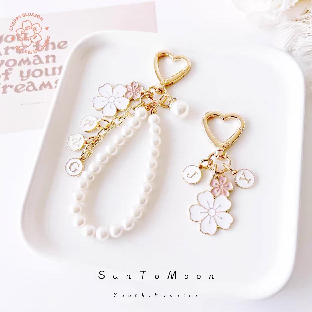 かわいい両面桜合金キーホルダー花文字diy少女心かばんストラップairpodsアクセサリー