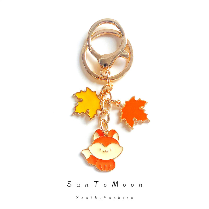 カエデの葉のキツネのキーホルダーの創意がぼんやりと萌えます。
