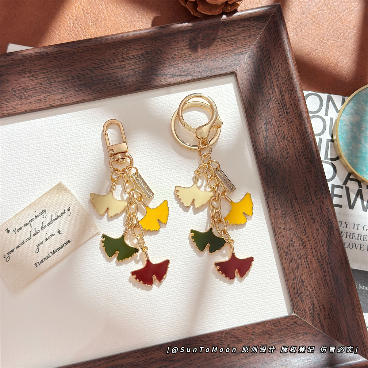 落葉イチョウの葉手作りシンプルなキーホルダーガールフレンドバッグペンダントAirPodsジッパーバックル装飾