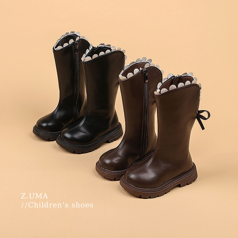2025儿童长靴女童秋冬高筒靴时尚公主棕色长靴黑色马丁靴女童单鞋