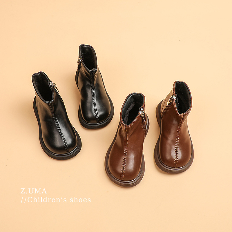 男童靴黑色宝宝小皮靴2025年秋季新款儿童女童鞋子马丁靴潮流短靴
