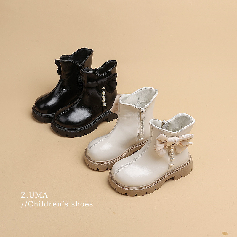 女童公主短靴2025年秋款单靴蝴蝶结洋气皮靴儿童马丁靴爆款软底靴