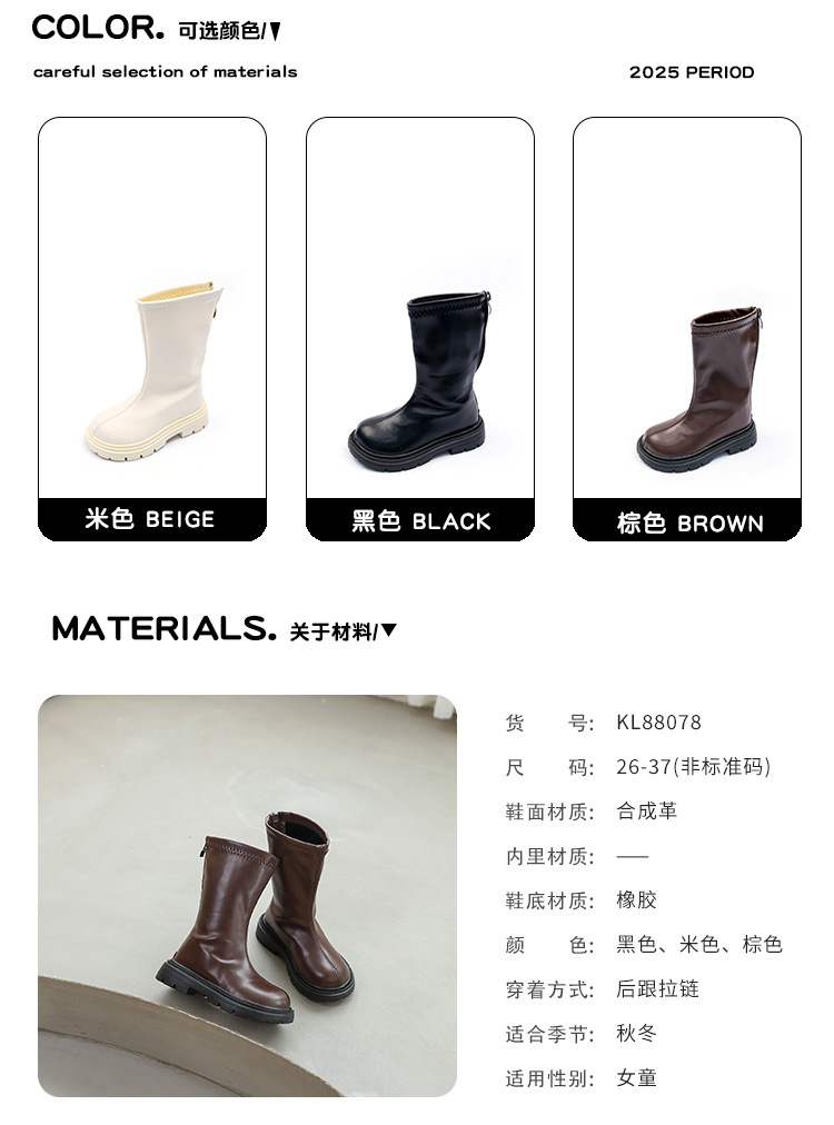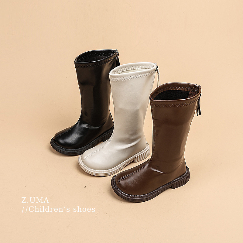 2025秋冬儿童时尚皮靴冬季新款女童长筒靴小女孩潮牌单靴中大童