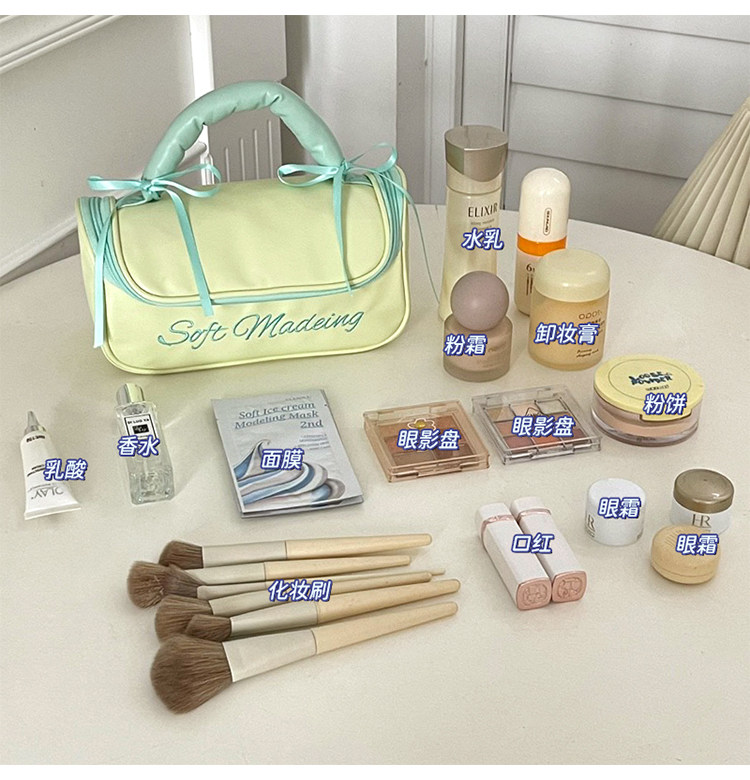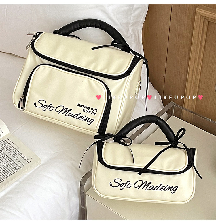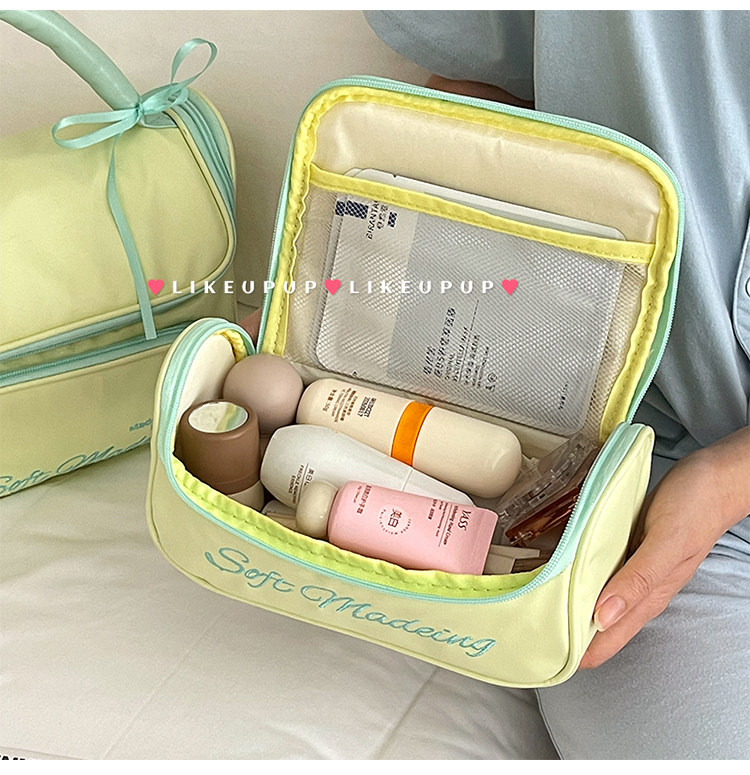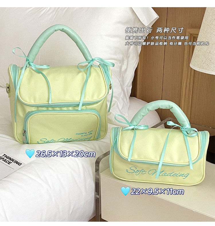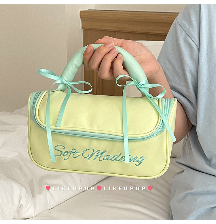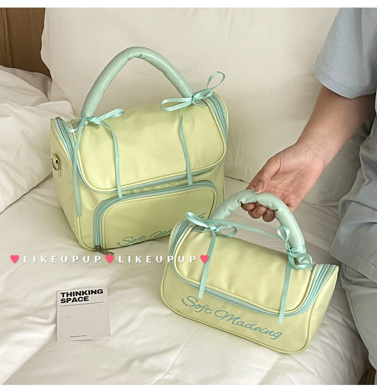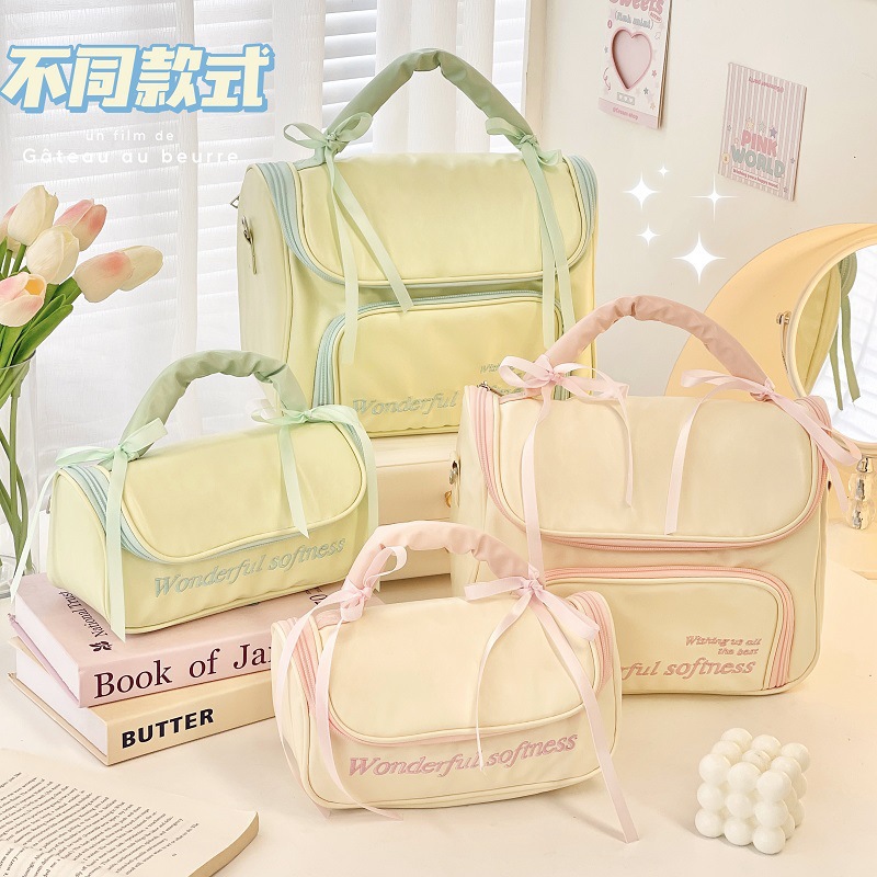 新款简约蝴蝶结化妆包便携外出手提收纳包化妆品洗漱包防水大容量