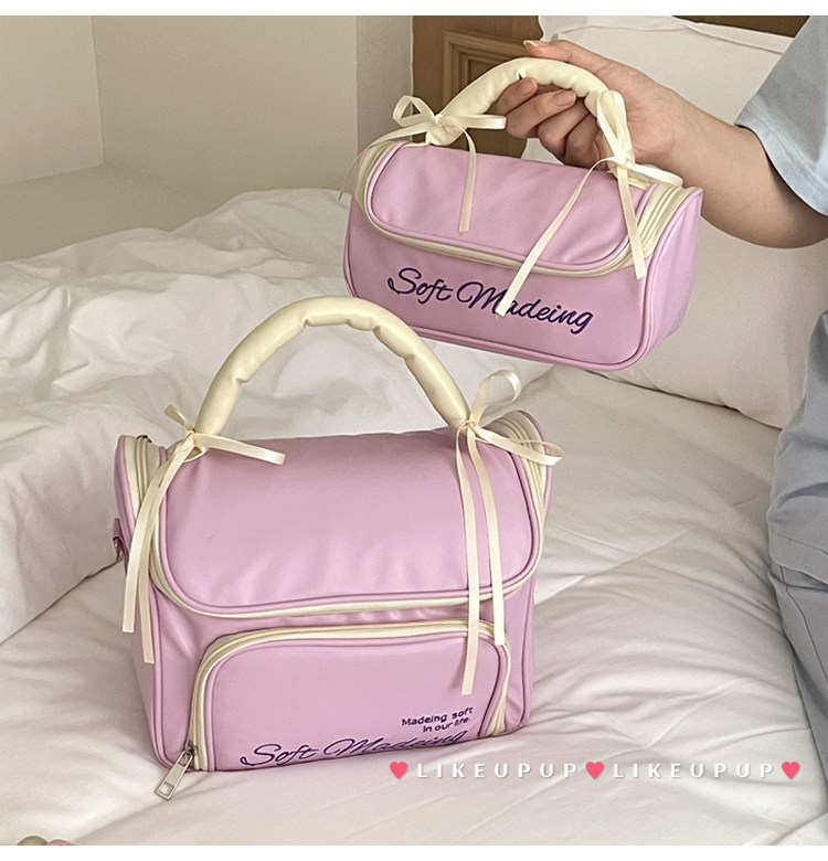 少女心蝴蝶结化妆包便携外出手提收纳包化妆品洗漱包防水大容量