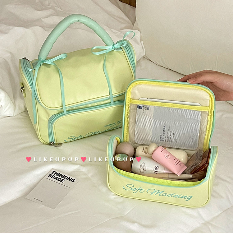 少女心蝴蝶结化妆包大容量外出便携手提包化妆品收纳防水洗漱包