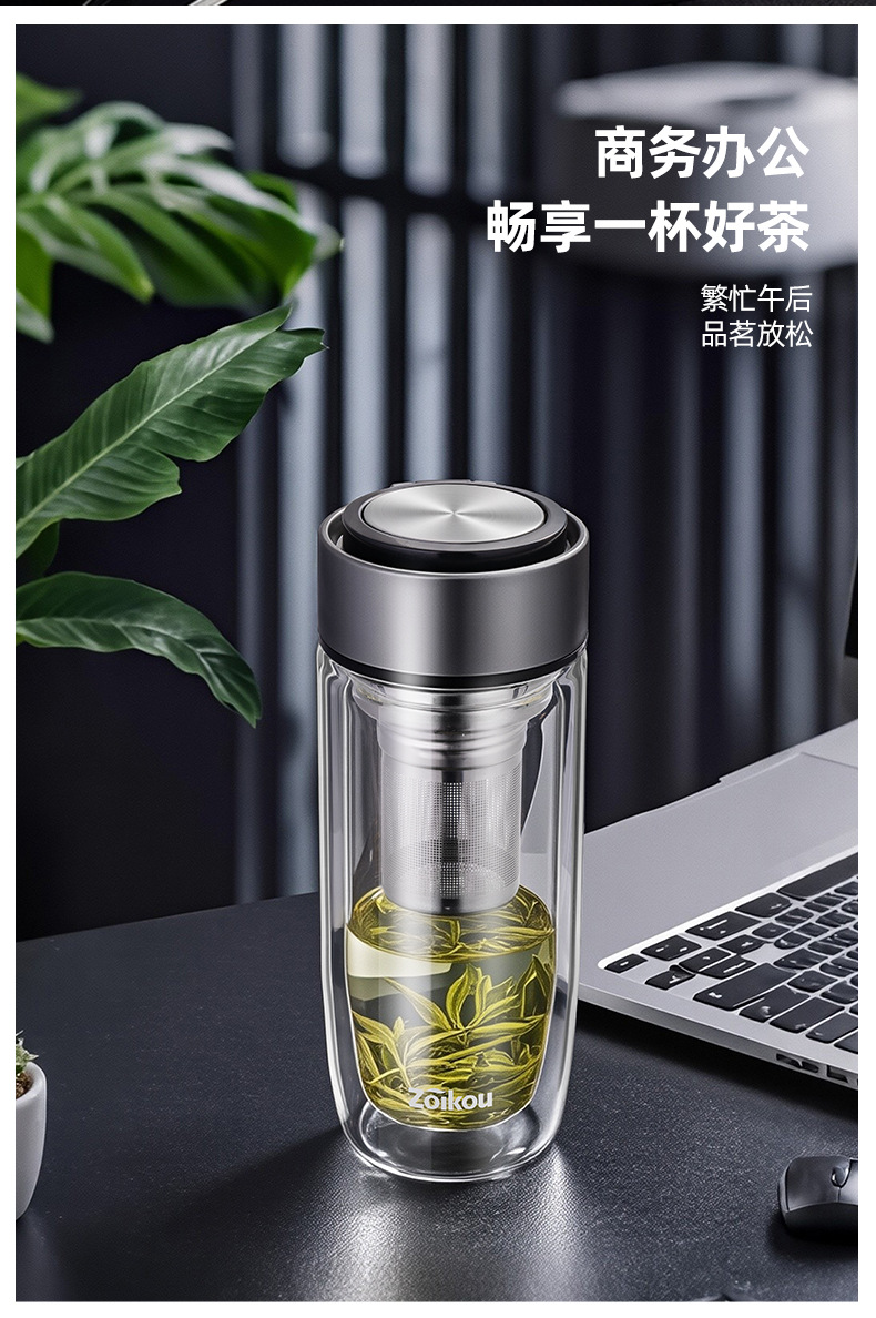 ガラスウォーターカップ 2025 メンズ新しい家庭用高温耐性蓋付きメンズティーセパレートカップ