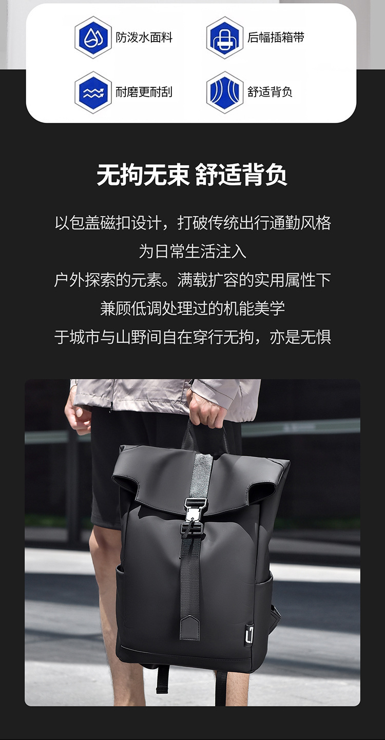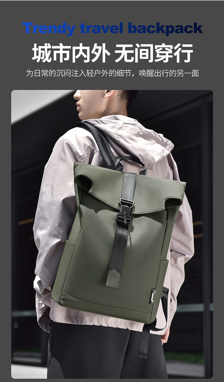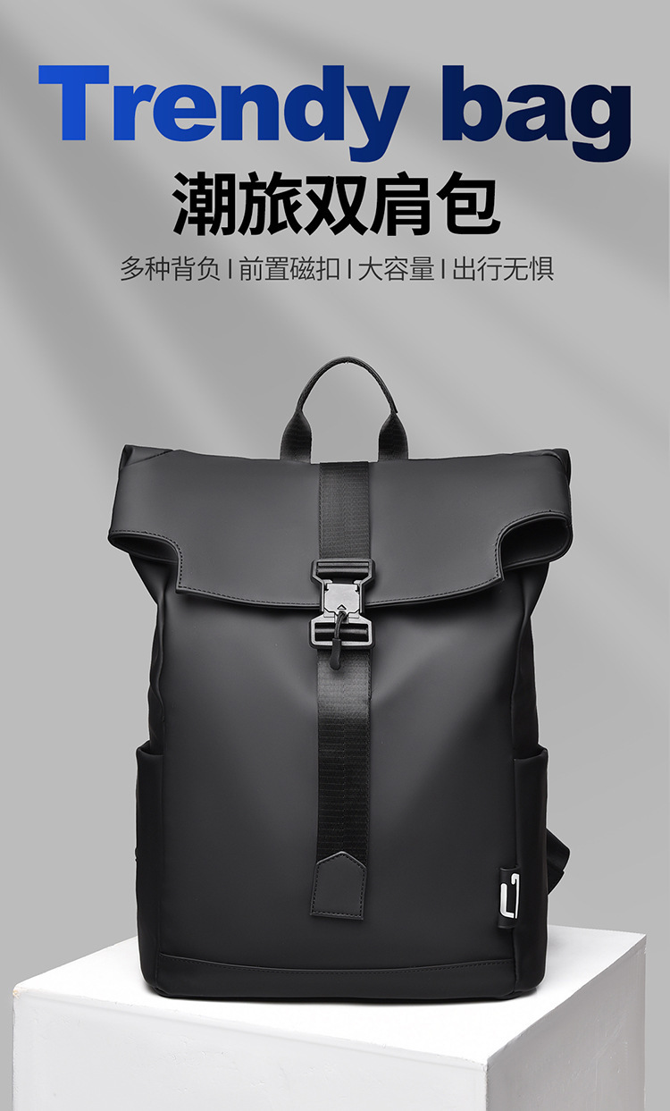 クロスボーダー新型潮旅アウトドア機能ランドセルフリップカバーマグネットデザインリュックサックメンズ高級レジャー旅行カバン