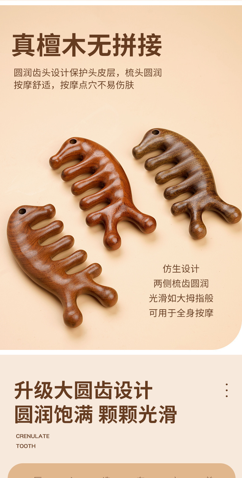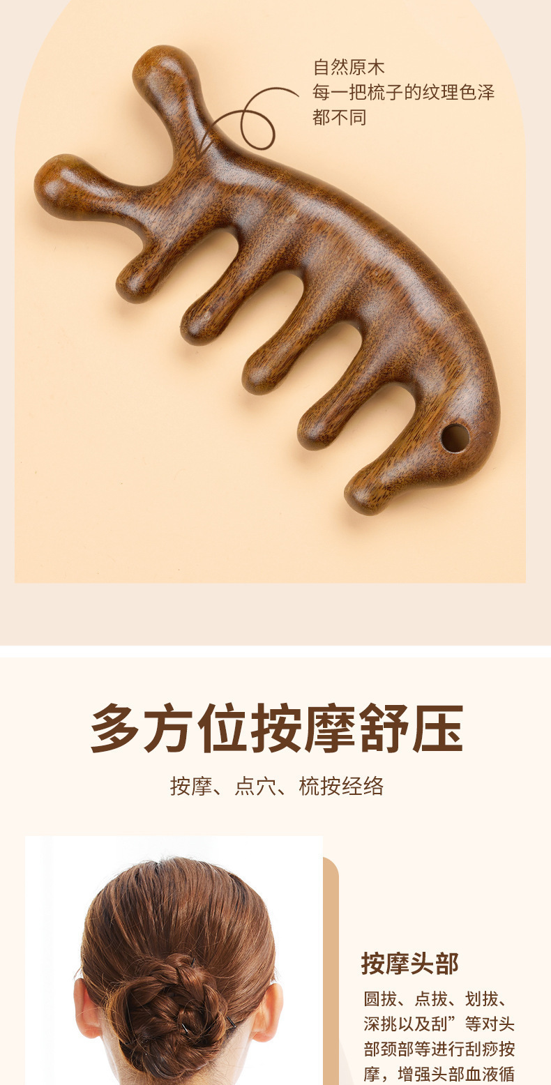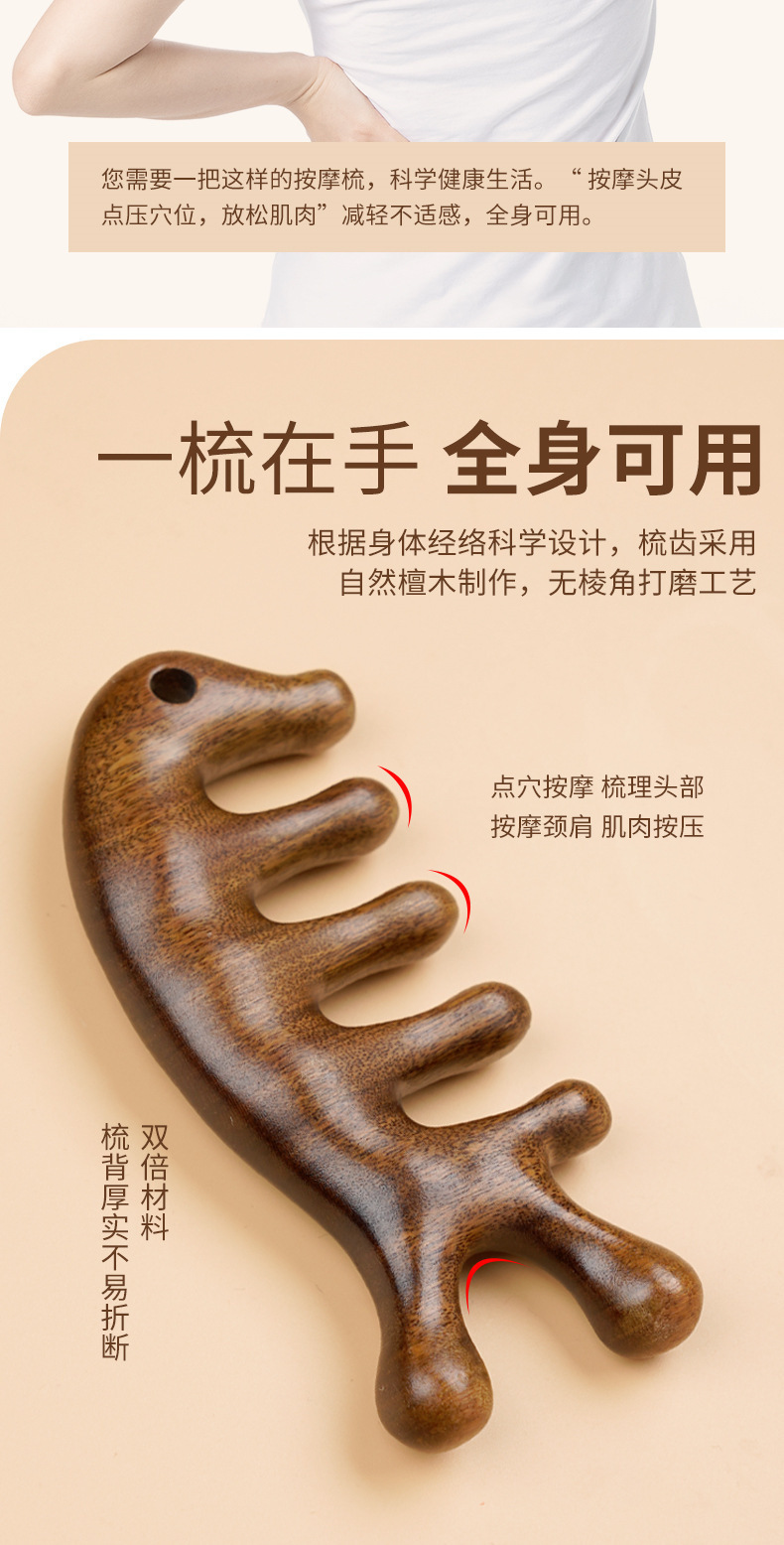白檀マッサージコーム、経絡ヘッドマッサージ、男女兼用5本指マッサージコーム、首顎スクレーピングアーティファクト
