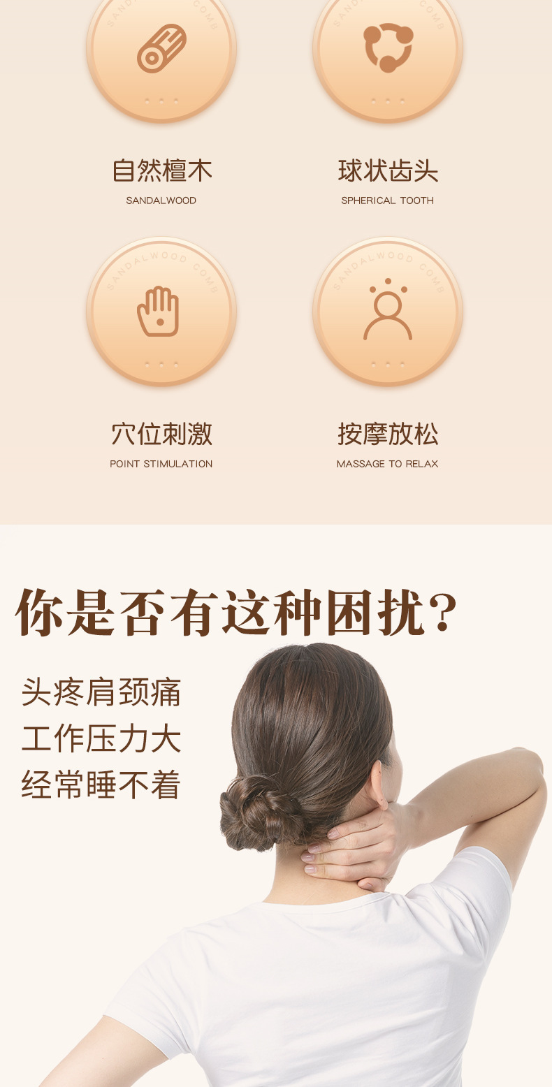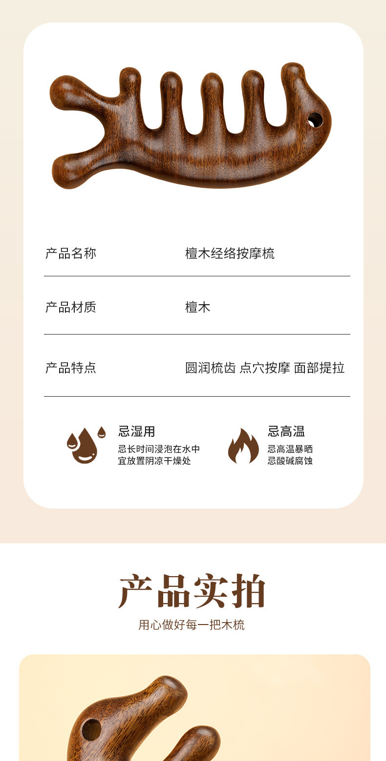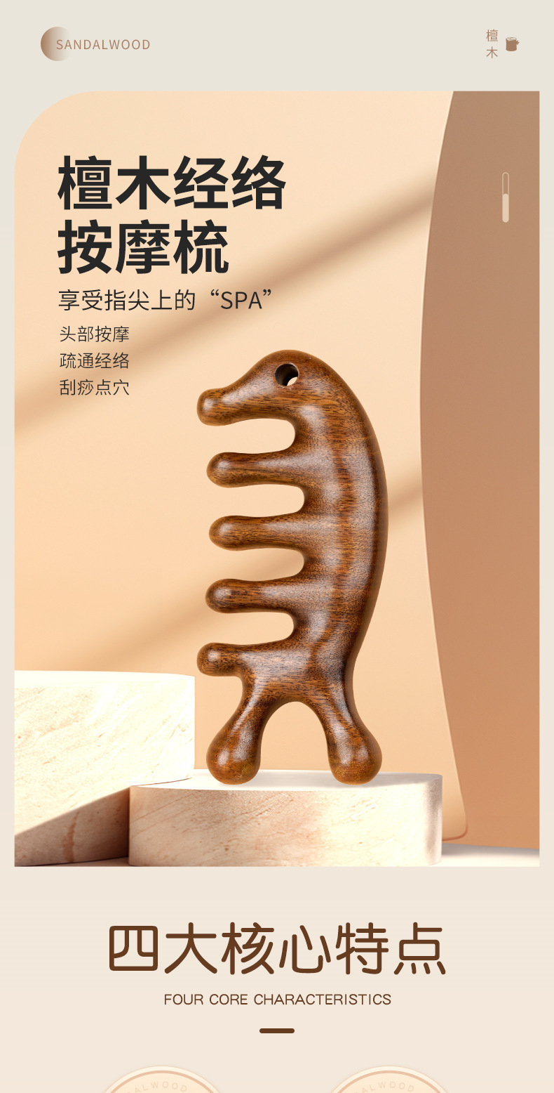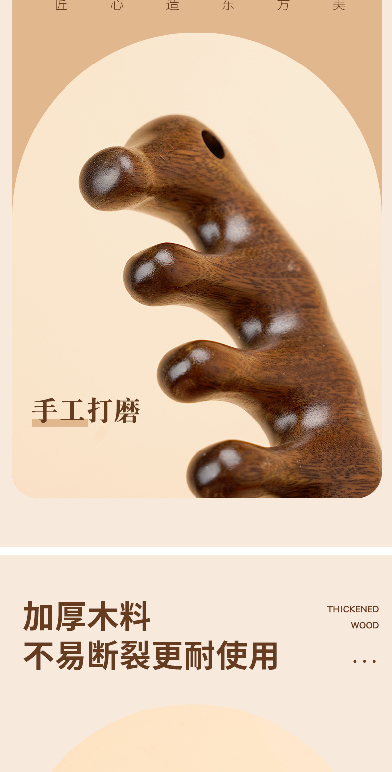 白檀マッサージコーム、経絡ヘッドマッサージ、男女兼用5本指マッサージコーム、首顎スクレーピングアーティファクト