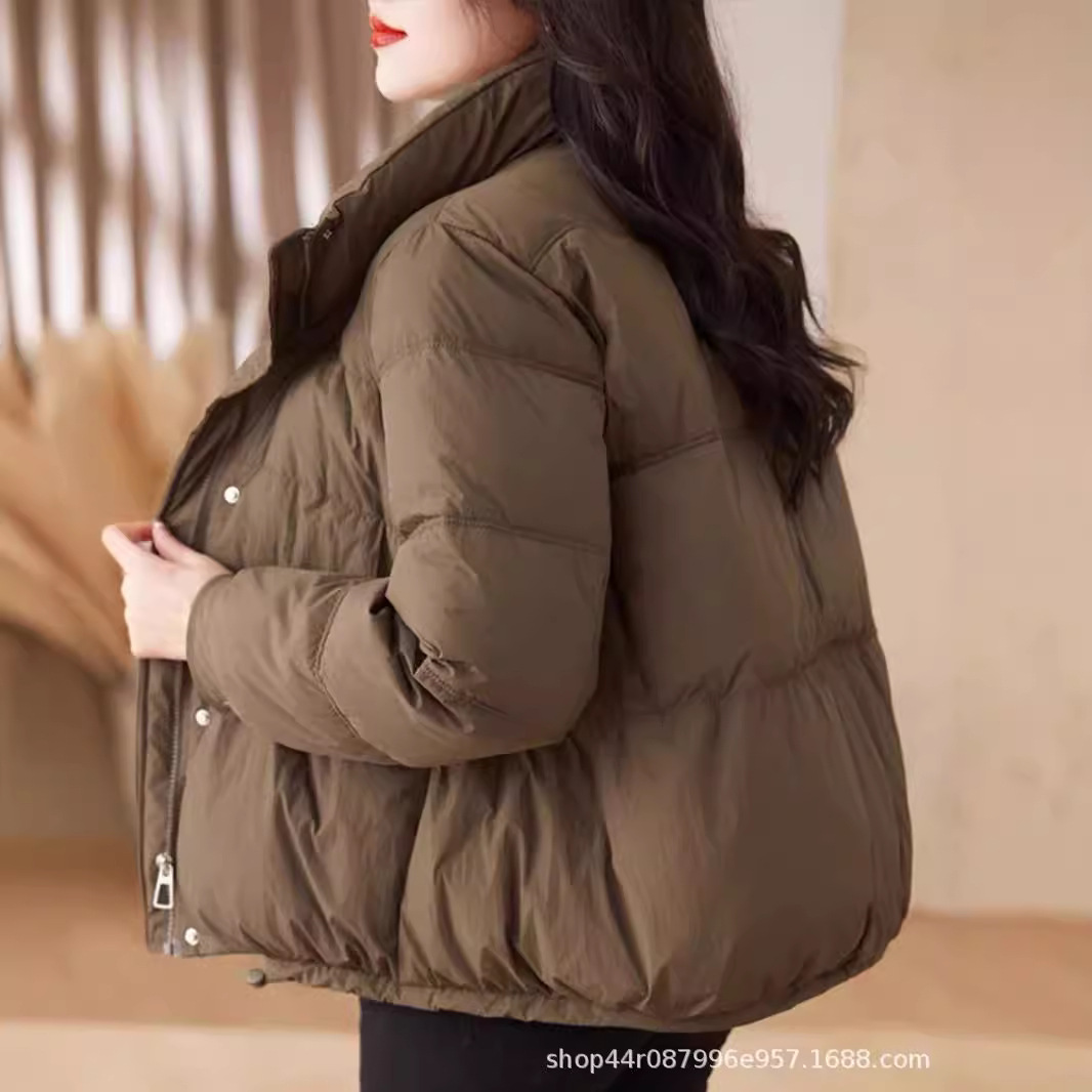 2025年流行の万能ダウンコットンジャケット、ゆったりとしたスタンドカラー、冬用パンコート、小柄な女性向けショート丈、暖かいトップス、トレンド