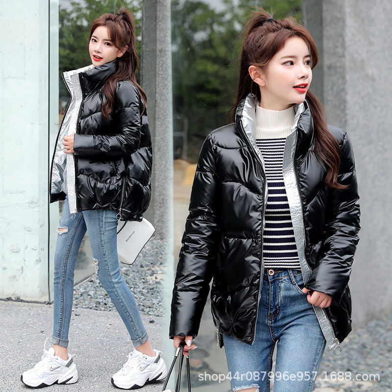 明るいダウンの綿服の女性は冬2025の新しいサイズの洗濯しない綿の服の明るい皮の綿入れの短いパンの服のコートを着ます。