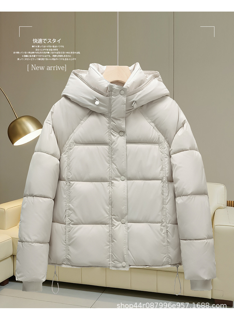 パフコットンジャケット女性のための 2025 冬の新しいショートフード付きルーズパンジャケット厚みのあるカジュアル暖かいオフシーズンジャケット