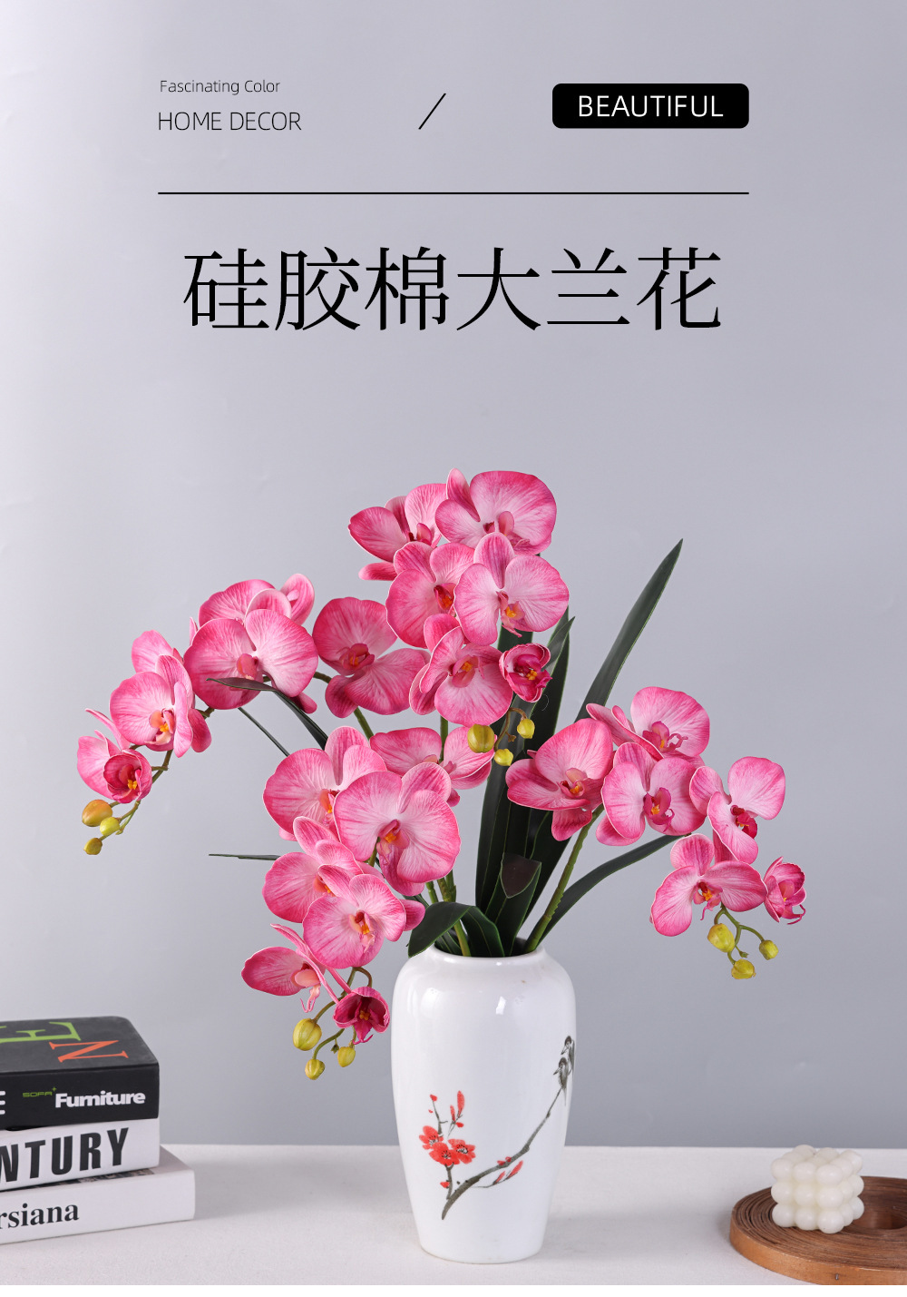 仿真花 硅胶棉蝴蝶兰 大兰花轻奢家居酒店软装饰工程婚庆布景假花