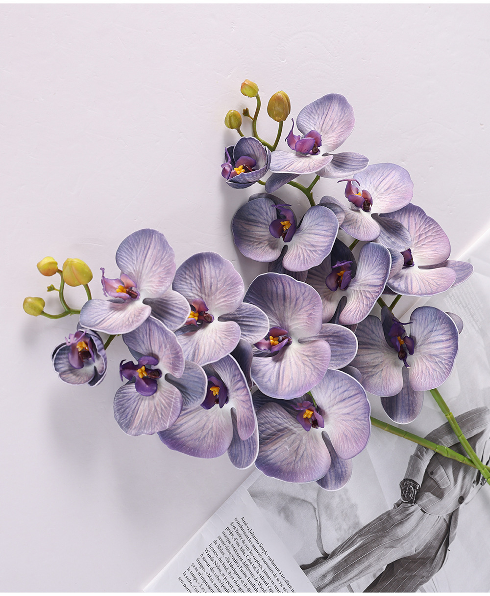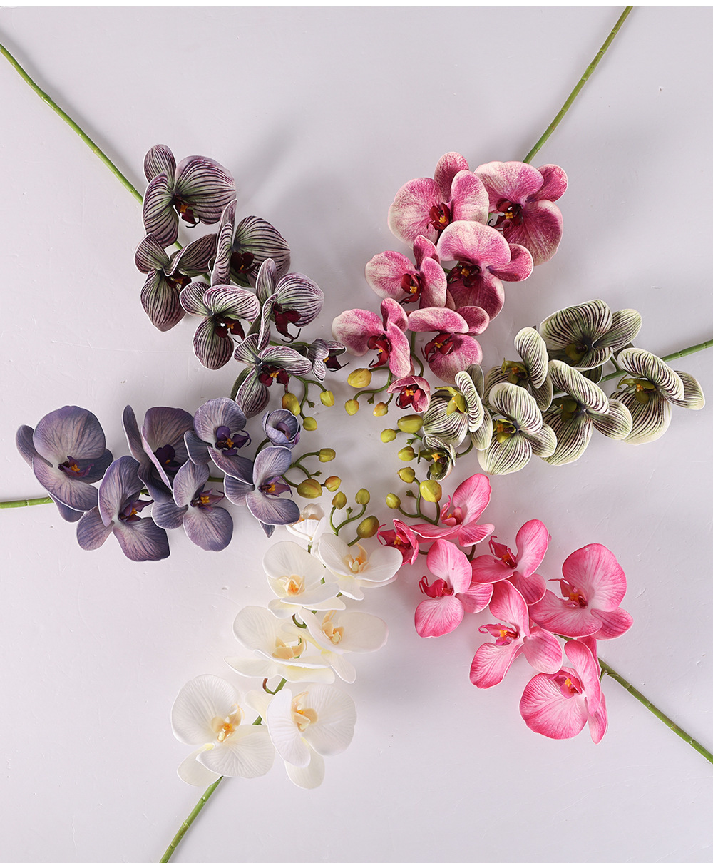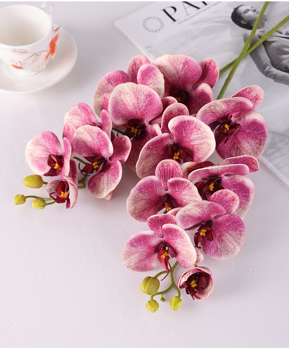 手感胶片9头蝴蝶仿真花 单支高品质蝴蝶兰假花北欧餐桌装饰花材