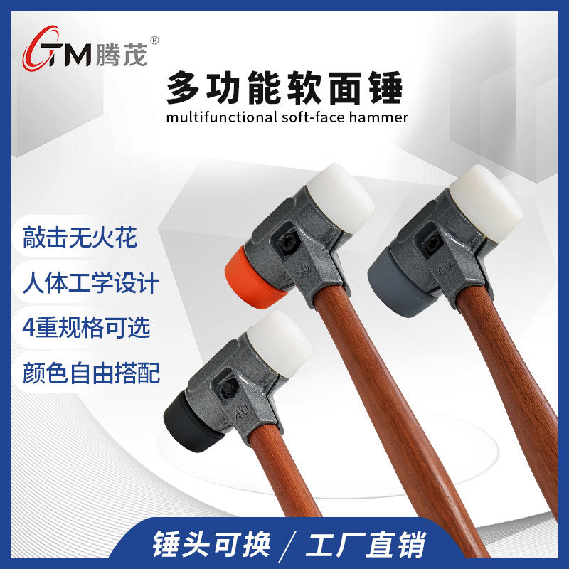 Tengmao Tengmao 交換可能なヘッドソフトサイドハンマーナイロンゴムハンマーヘッド取り付けハンマーホワイトオーク木製ハンドルハンマーシャンパンハンマー