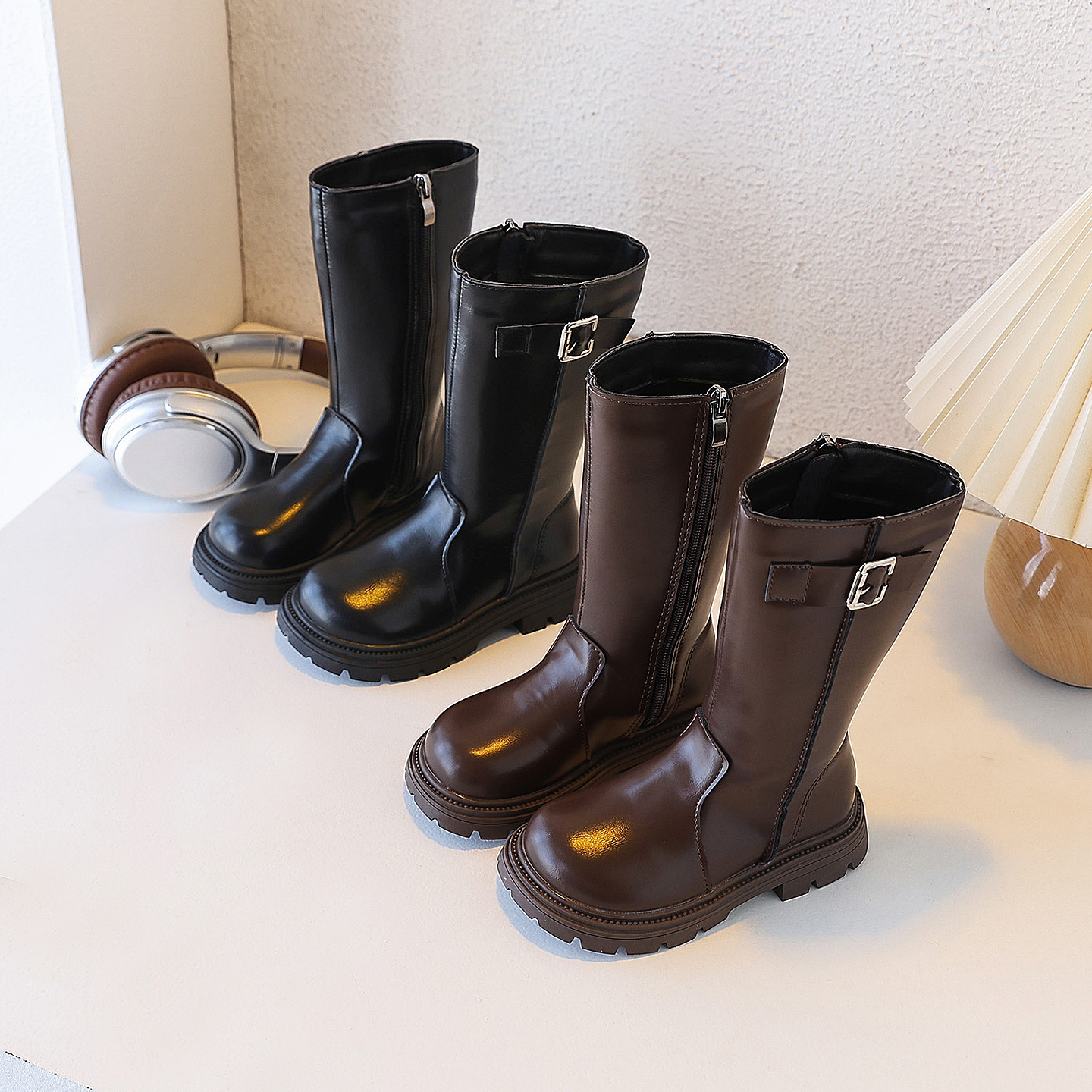 女童外贸皮靴2025秋冬新款时尚洋气长筒靴毛毛口软底高筒靴时装靴