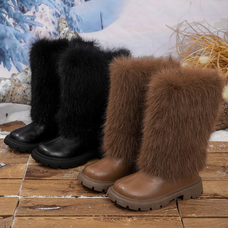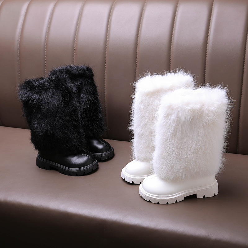 毛毛靴女童靴2025冬季新款高筒靴中小童马丁靴公主皮靴小女孩长靴