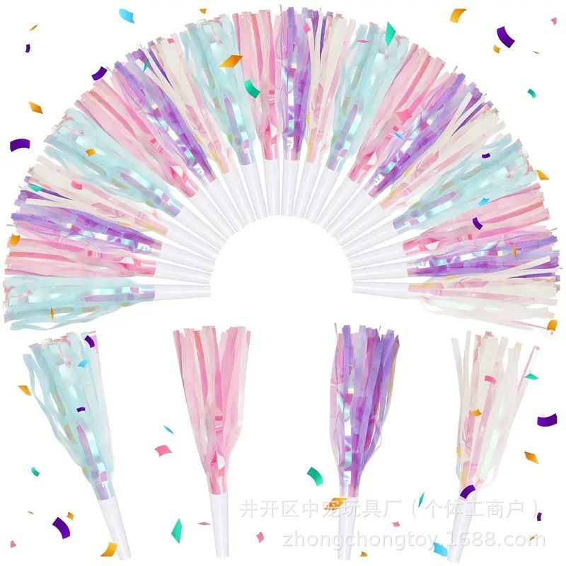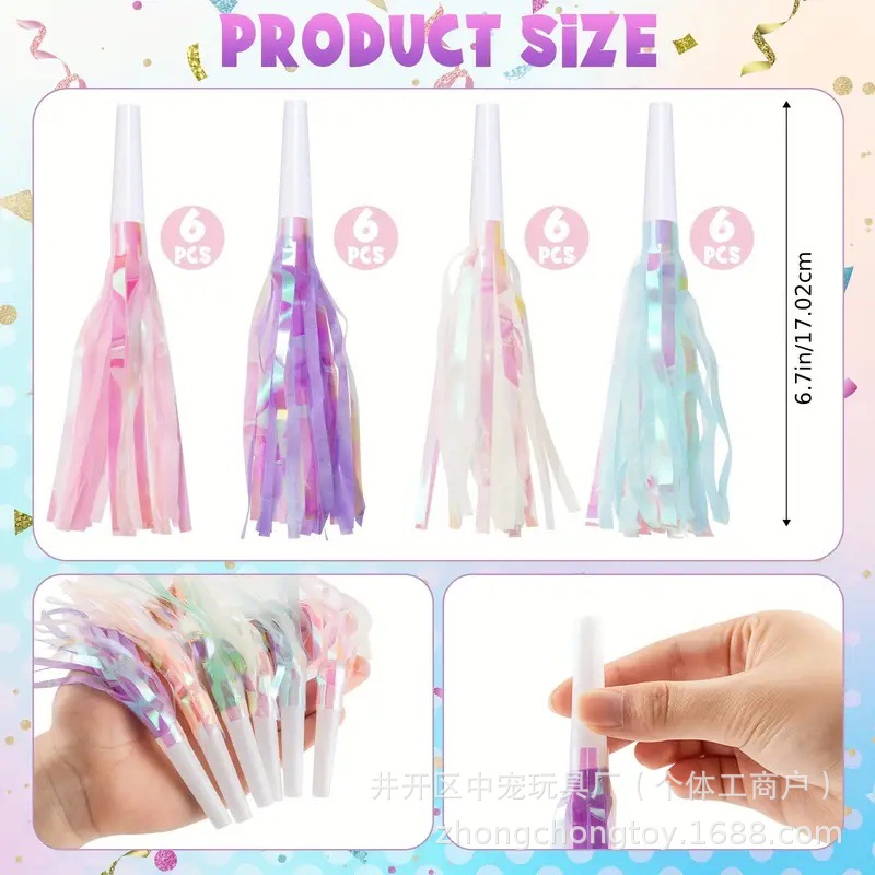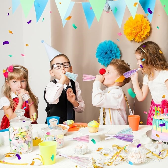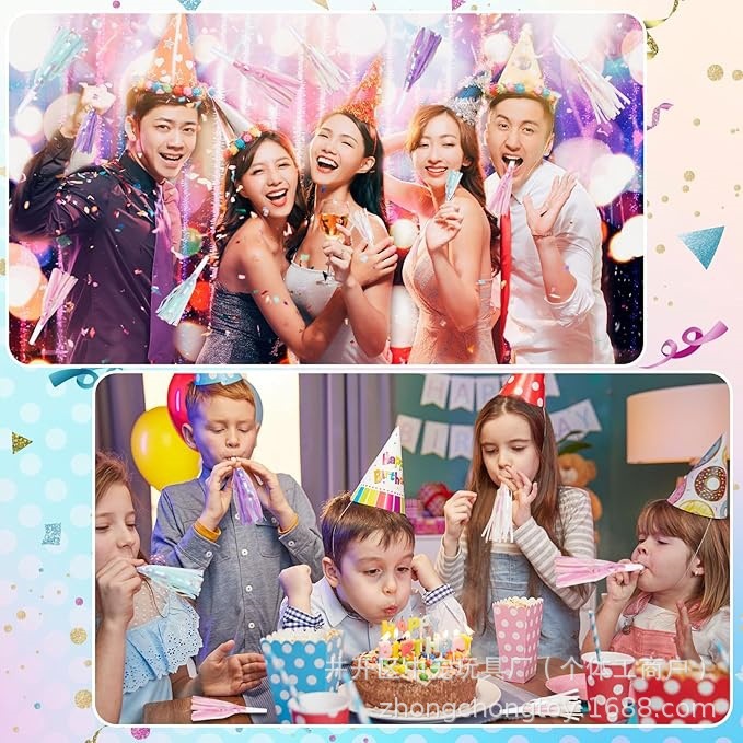 3)适用场景:派对噪音制造器适合各种庆典,我们的金属流苏派对喇叭为生日、婚礼、毕业典礼、体育赛事等主题派对气氛助威