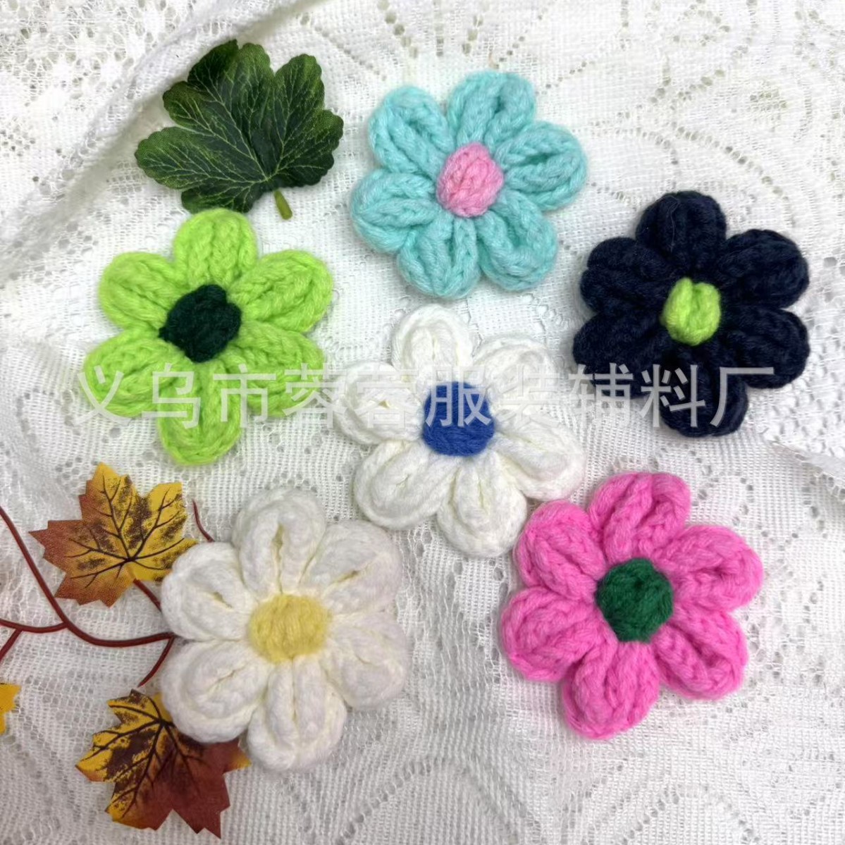 完成品diy手編みシュークリーム花山茶花服装補助材料クリスマスギフトツリー装飾毛糸花フック
