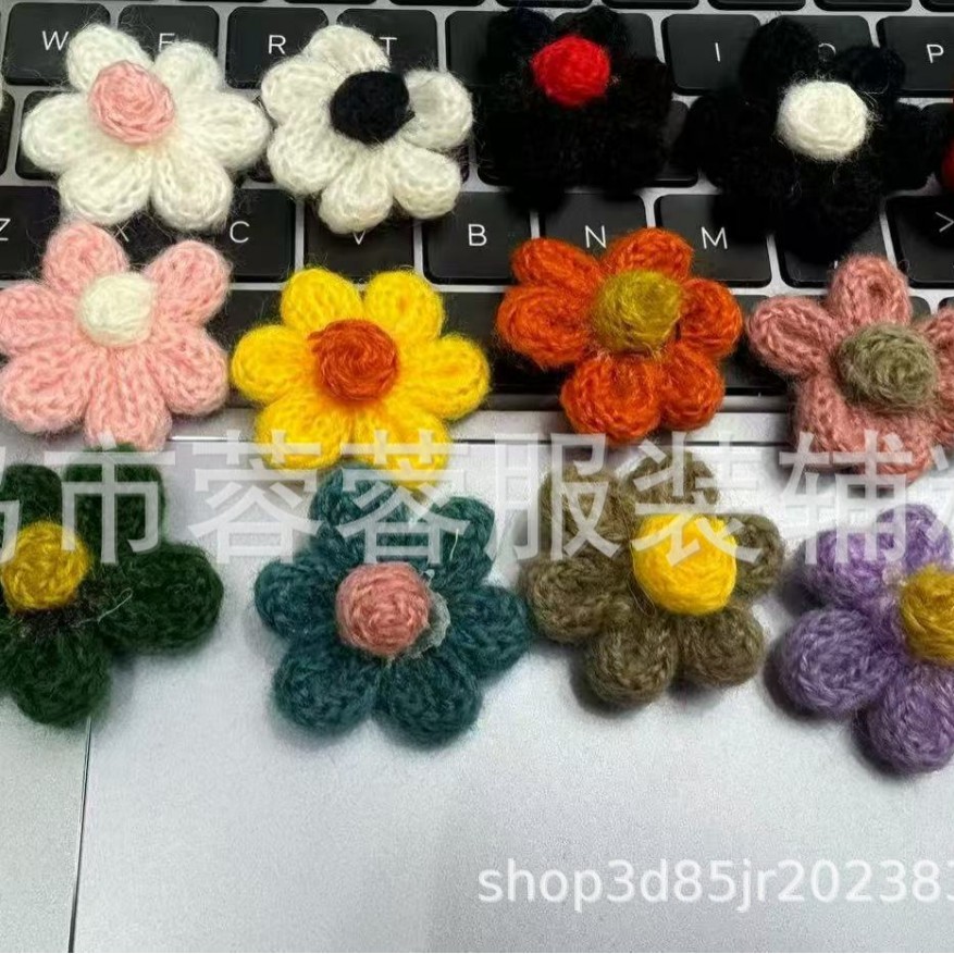 8cm 花手作りウールかぎ針編み立体花 DIY アクセサリー 6 花びら花セーターヘアピンアクセサリー編み物