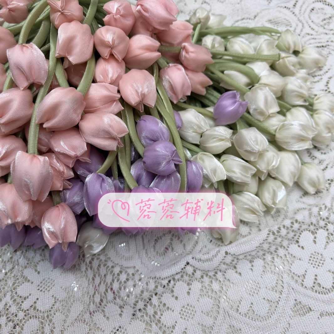 毛糸のチューリップの部品の花の清新で甘い装飾の花の包みの服の髪飾りの縄の飾りの補助材料