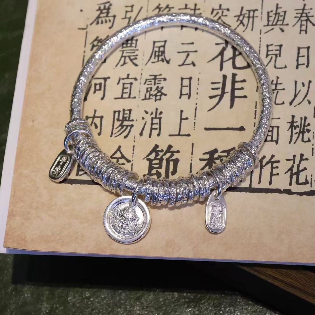 9999 純銀イエロー富の神の銀のブレスレット女性のための新しい中国風のシルバーブレスレット吉利純銀ブレスレット誕生日ギフト