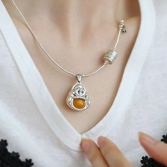 スター人気のHetian Jade 925スターリングシルバーZakiramペンダント安全お守りネックレスレディースレトロオールド絶妙