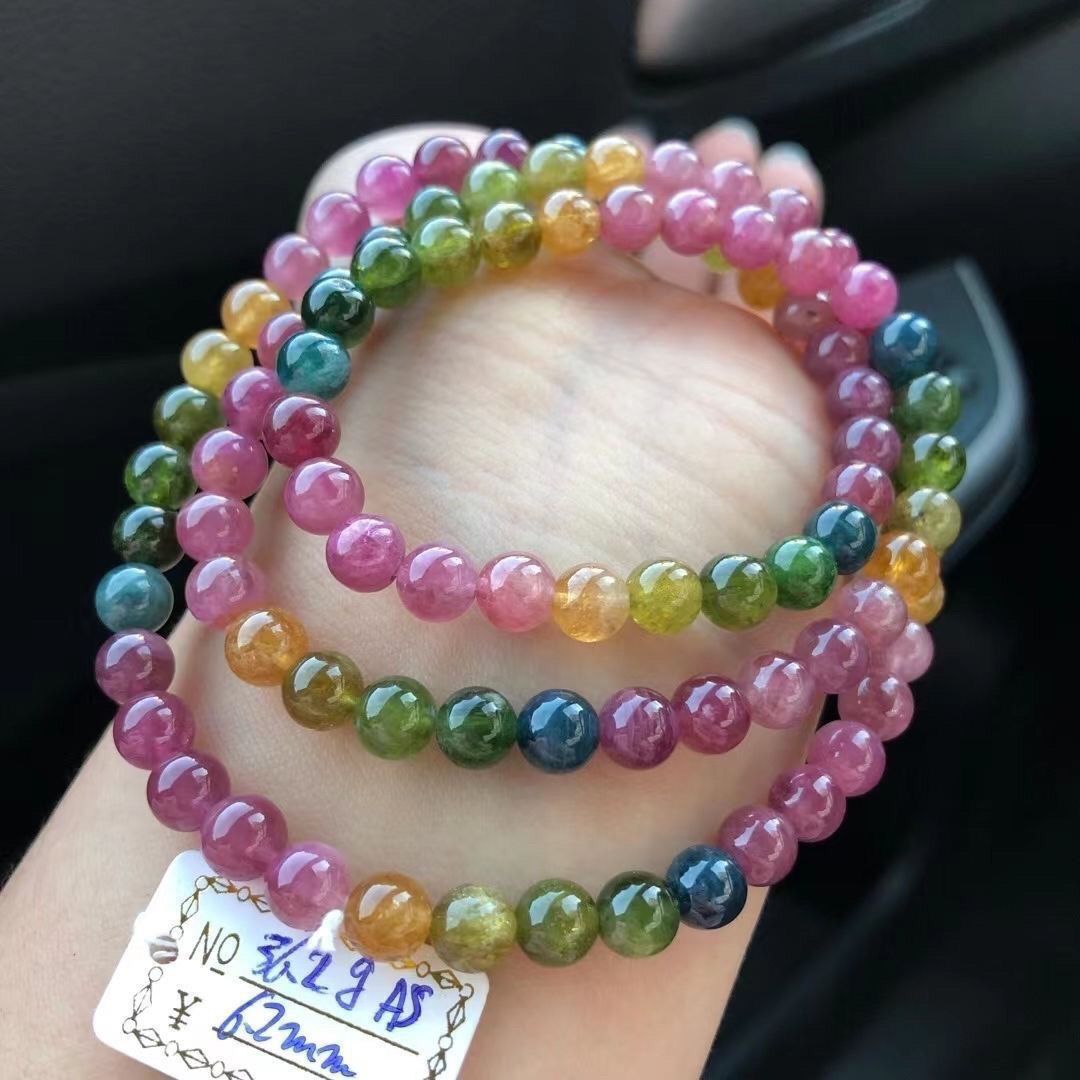 ブラジル産オールドミネラル、本物のスター人気レインボートルマリンブレスレット、マルチサークルビーズ、幸運の夫の石、幸運を呼びます