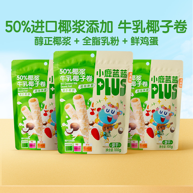 小鹿蓝蓝50%椰浆牛乳椰子卷宝宝儿童健康零食非油炸非膨化