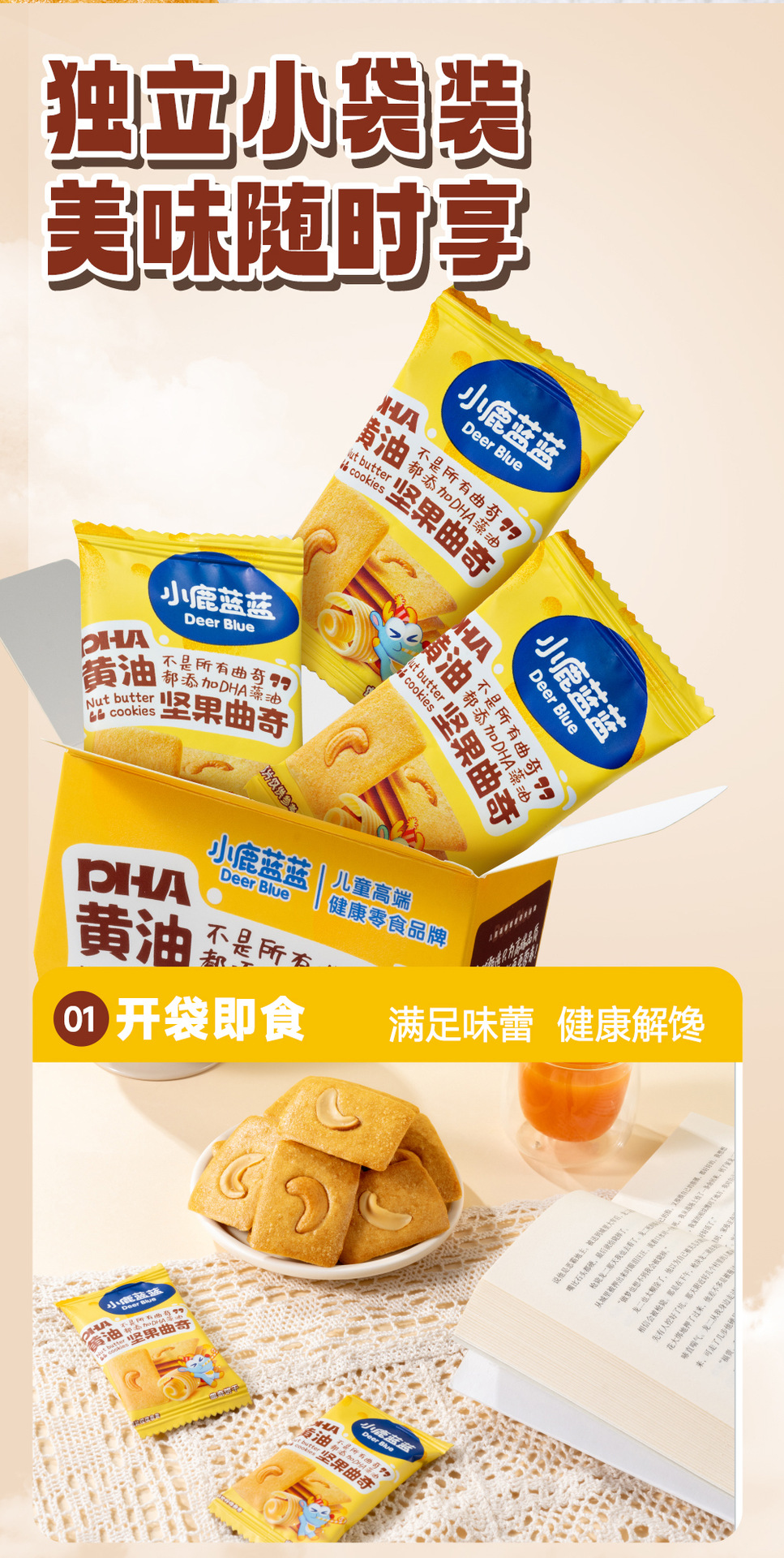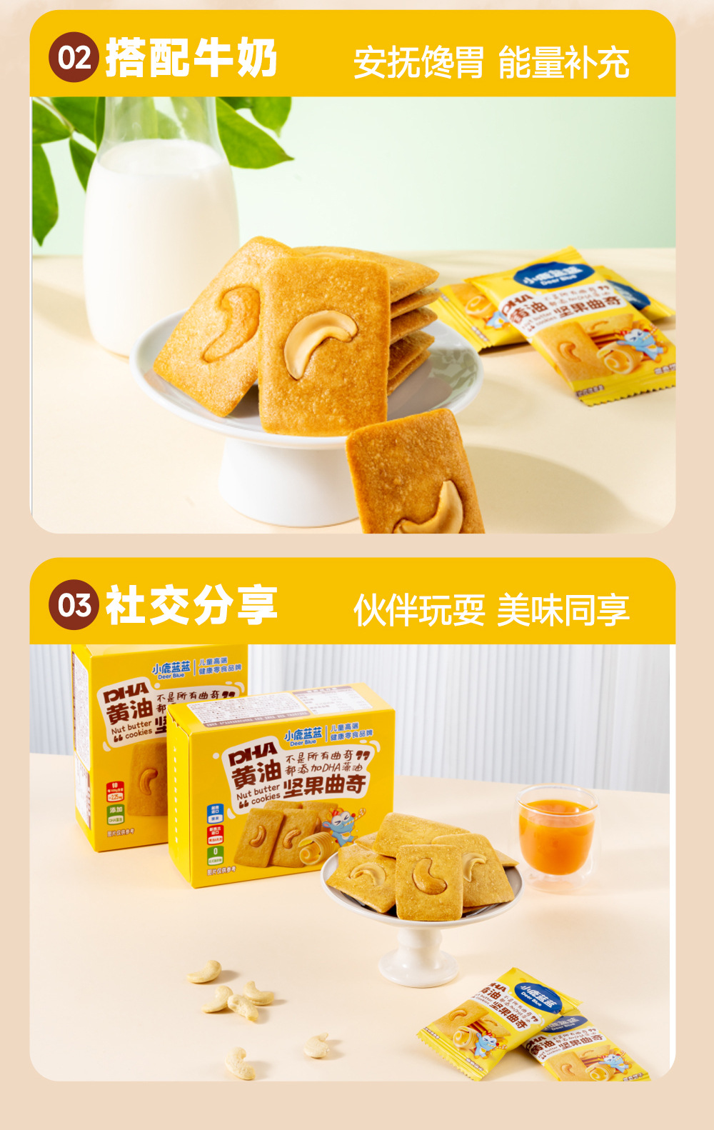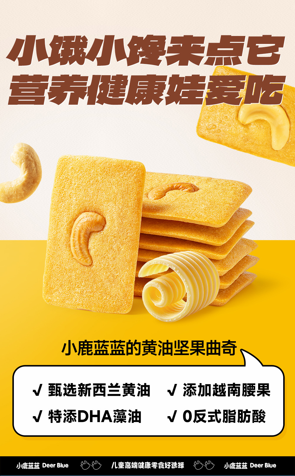 小鹿蓝蓝DHA黄油坚果曲奇零食小饼干健康烘焙儿童零食品牌