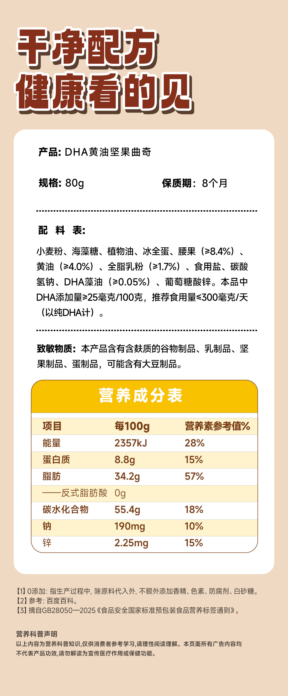 包装规格 DHA黄油坚果曲奇/80g