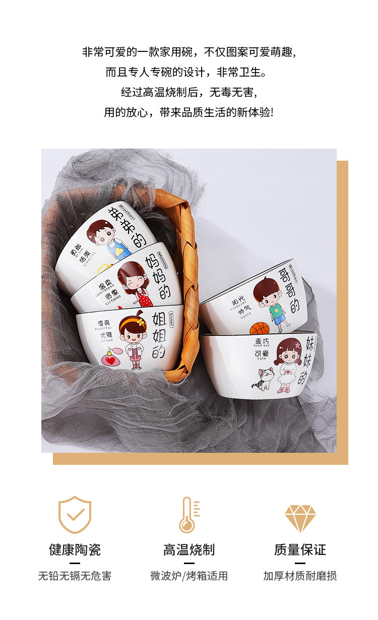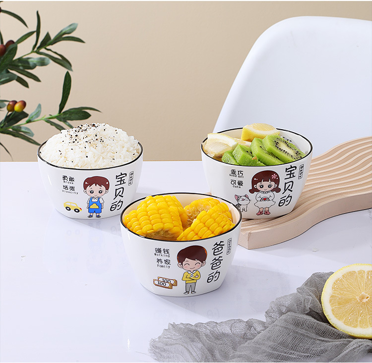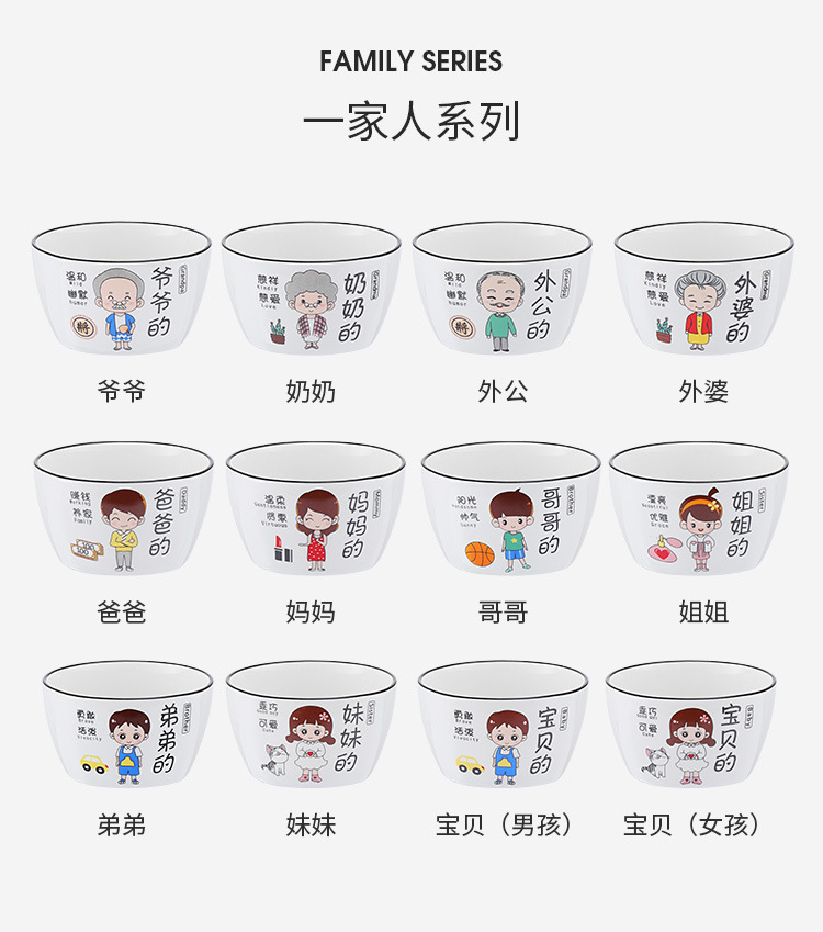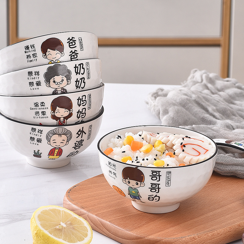 工場直売茶碗家庭用親子茶碗一家四口茶碗アニメ茶碗陶磁器ご飯茶碗ネット赤かわいい茶碗