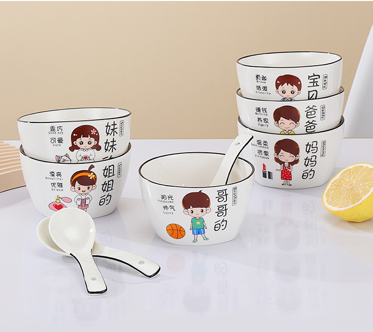 親子の碗の家庭の個性の一家の4口の碗の皿のスプーンのセットの漫画の姉妹のネットの赤いご飯の碗の陶磁器の家庭の碗