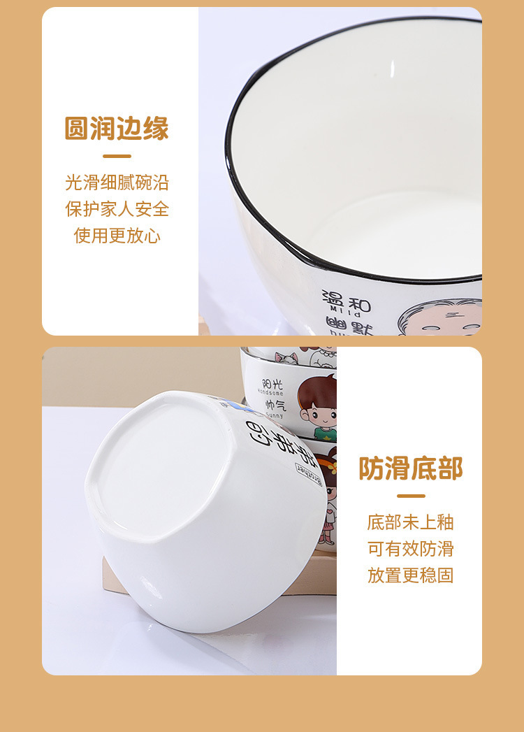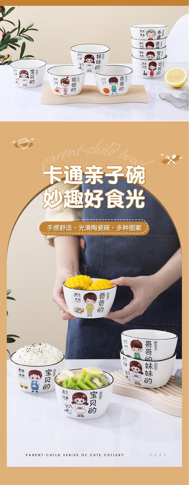 家庭用茶碗の親子茶碗の一家四口の茶碗の漫画碗の陶磁器のご飯の碗のネットの赤い新型の碗の食器の組み合わせ