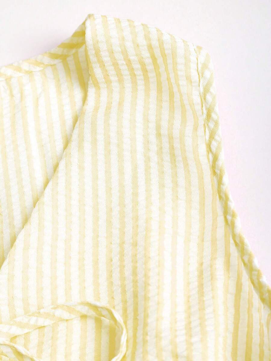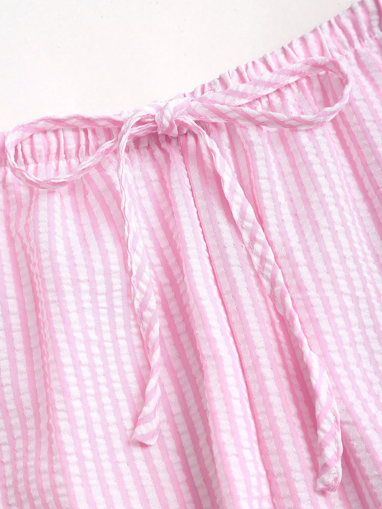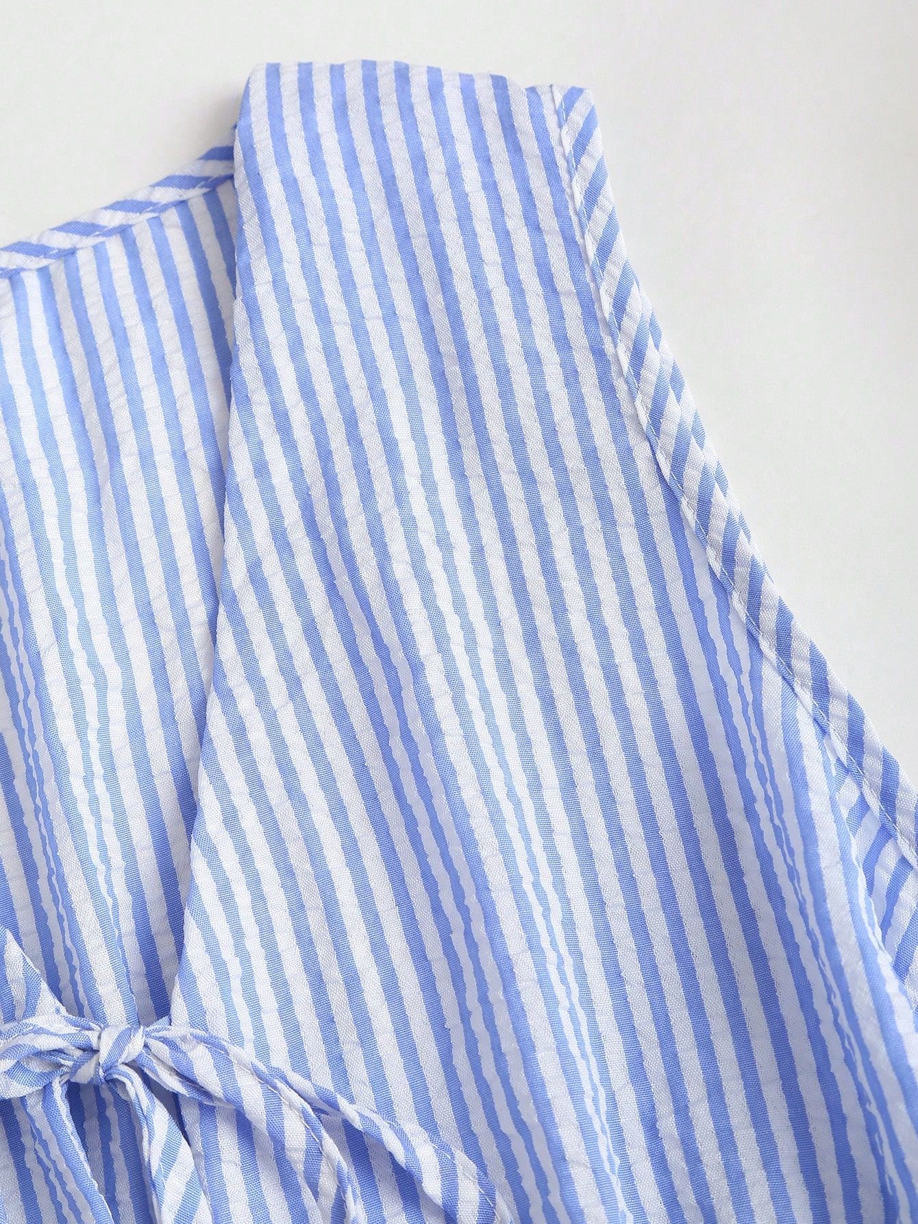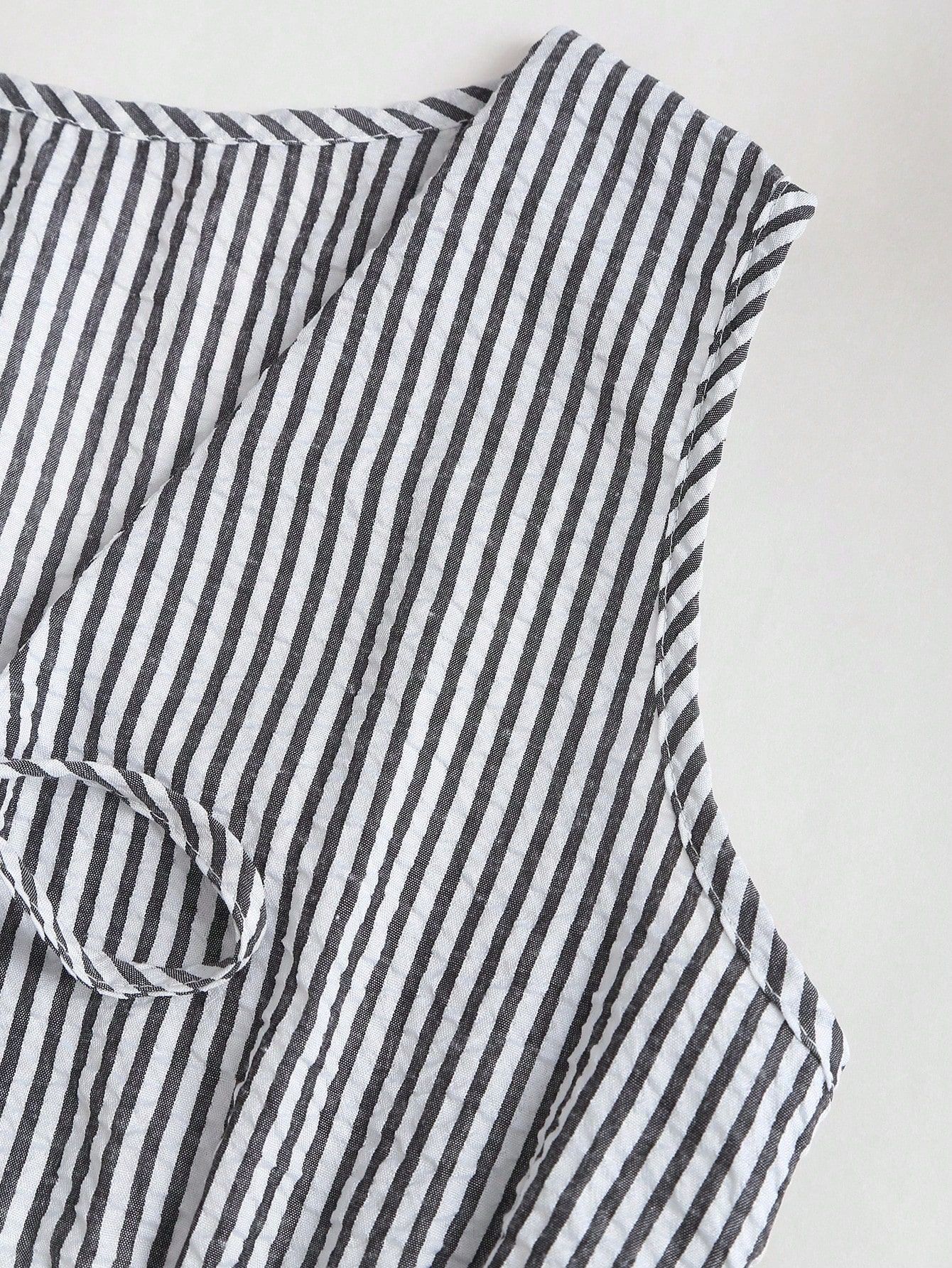 夏無地ストライプスーツカジュアルレースアップオールマッチベストルーズレースアップ無地パンツカジュアルスイートスーツ