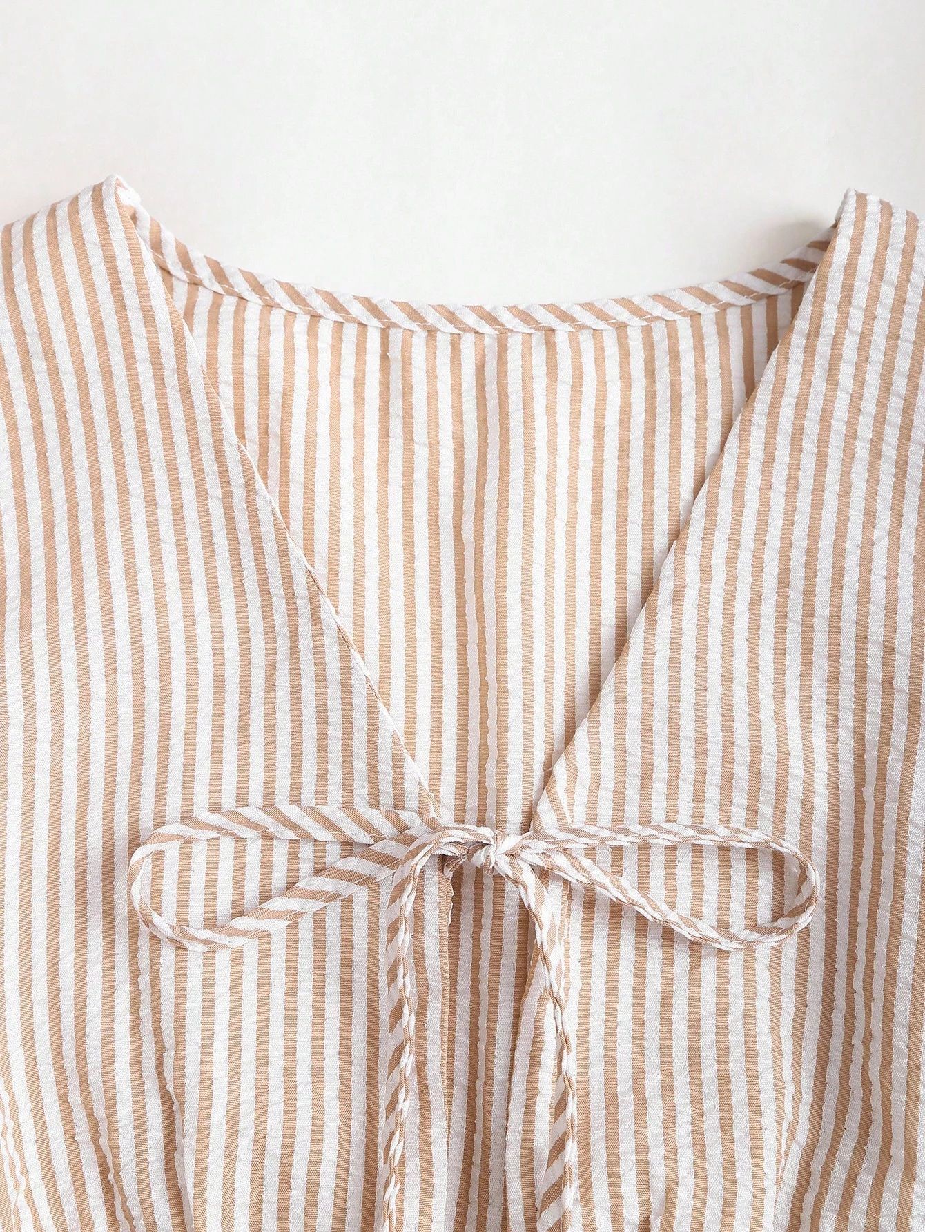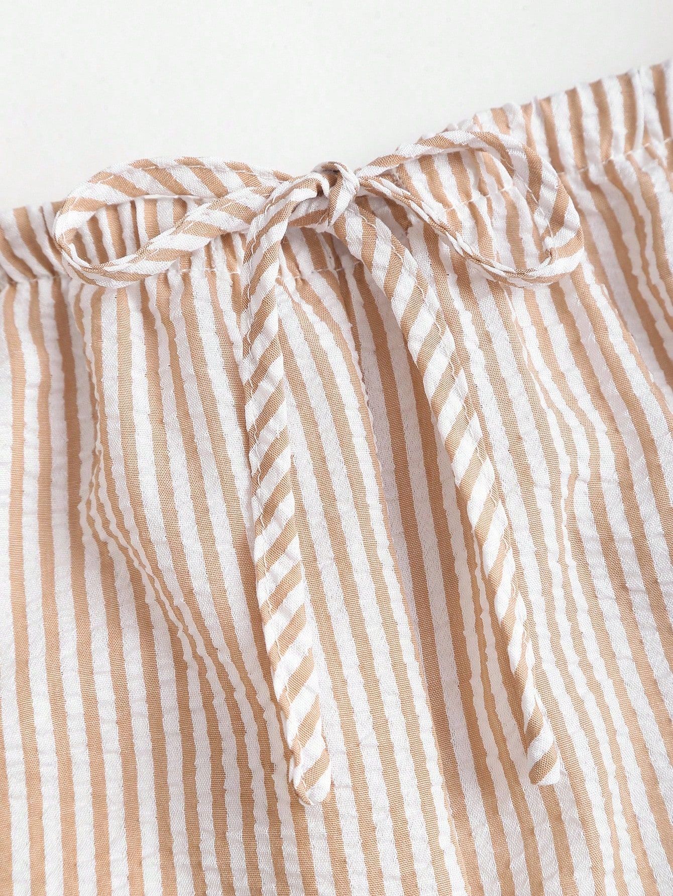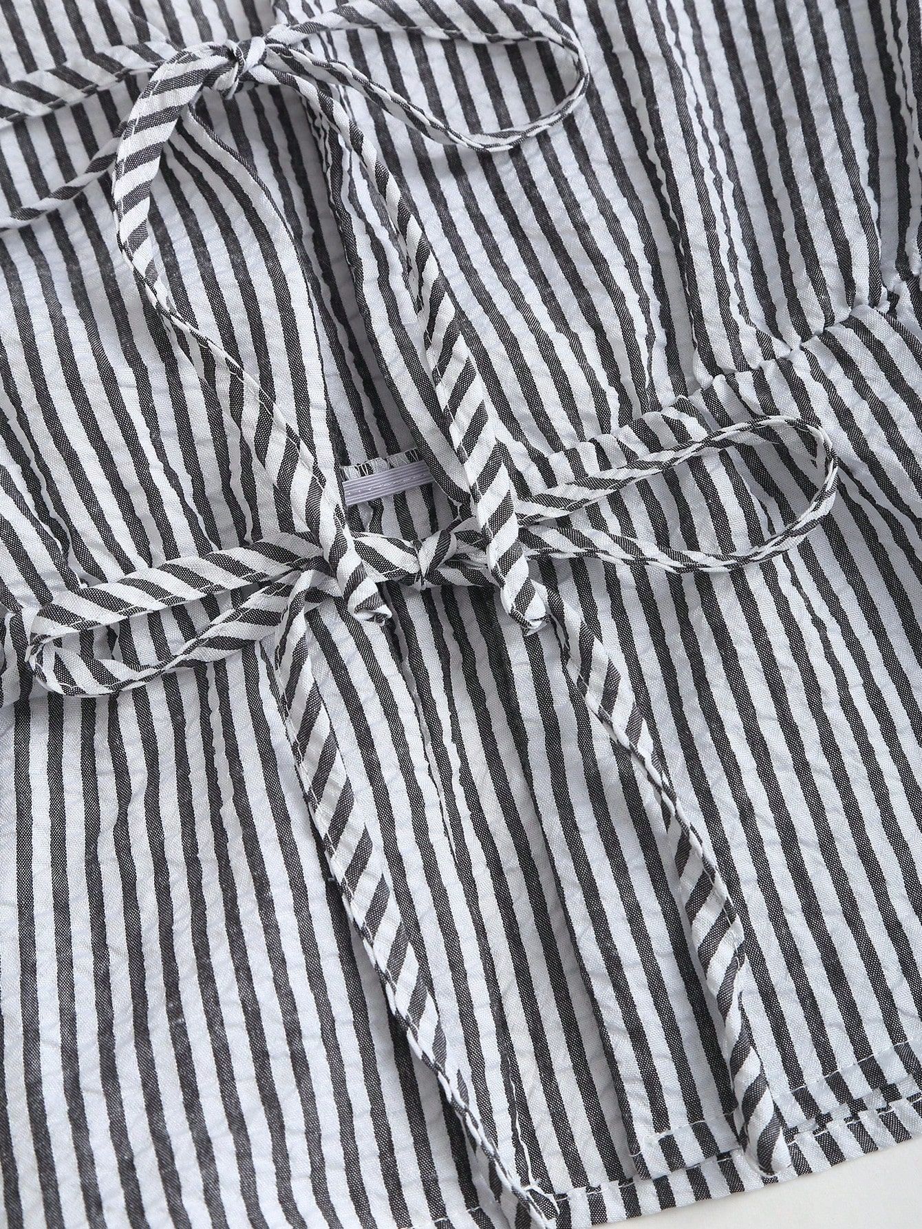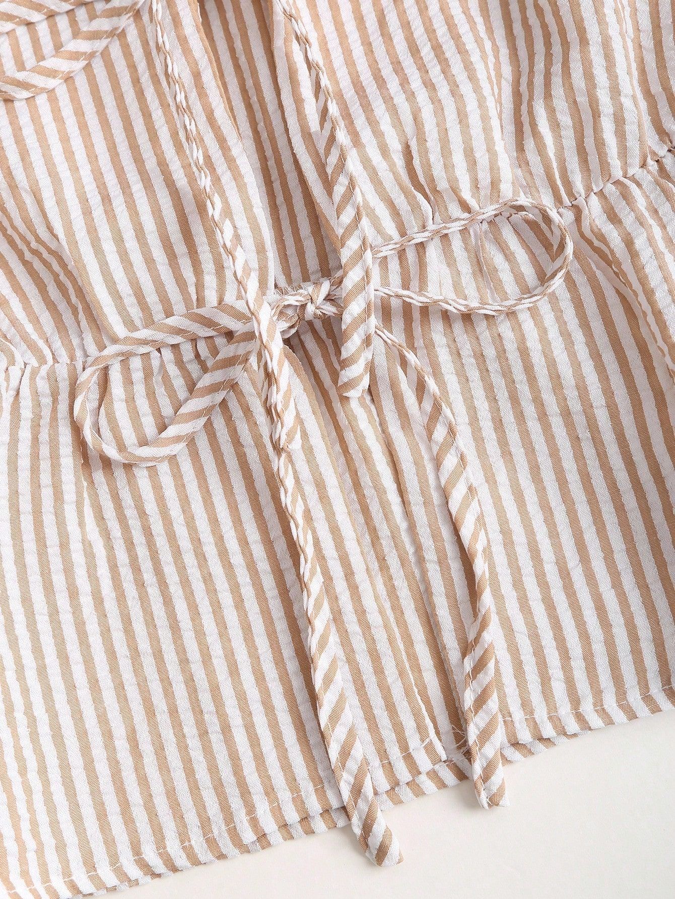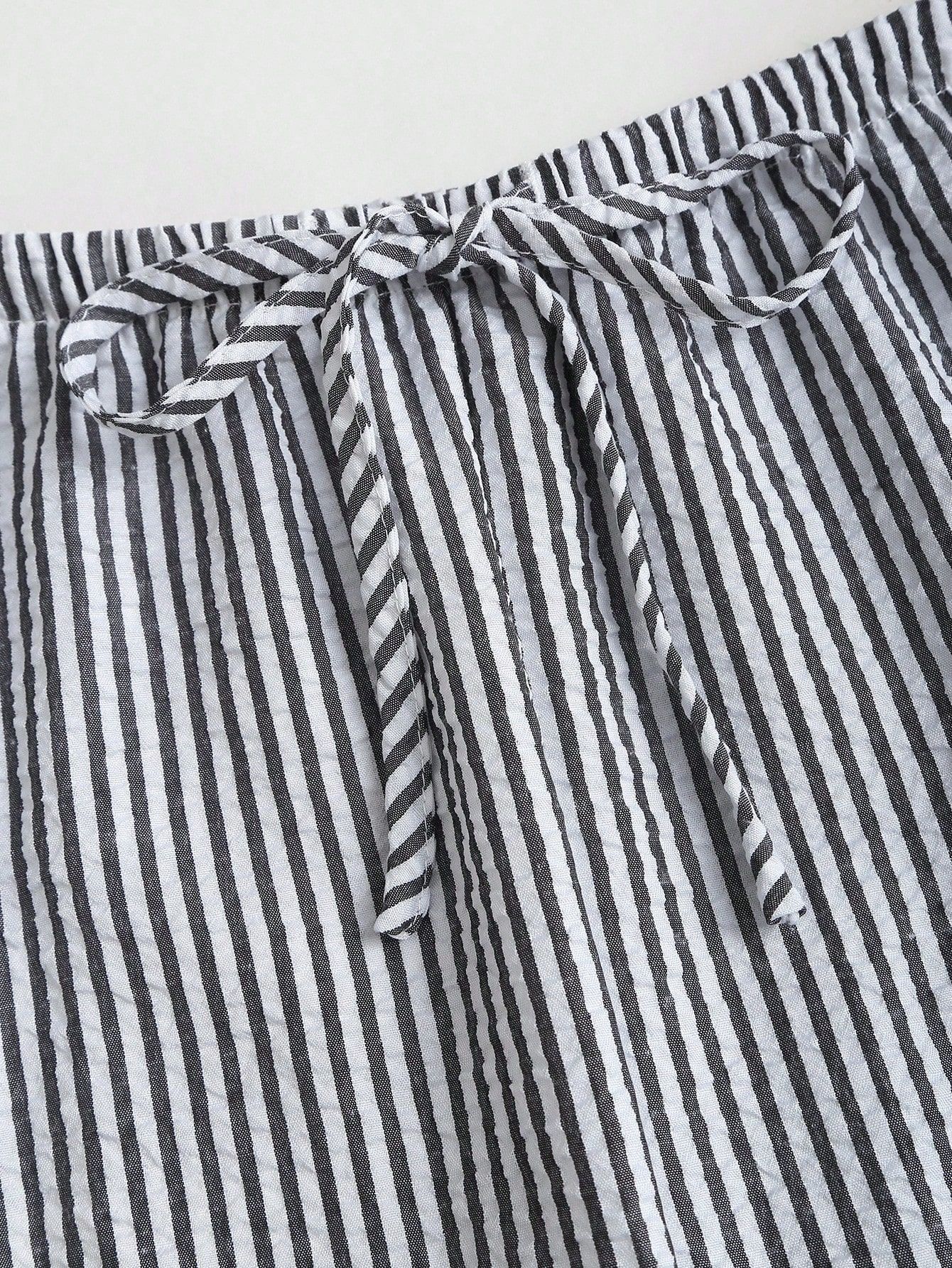 新款舒适高级感条纹宽松系带上衣休闲两件套百搭长袖甜美时尚套装