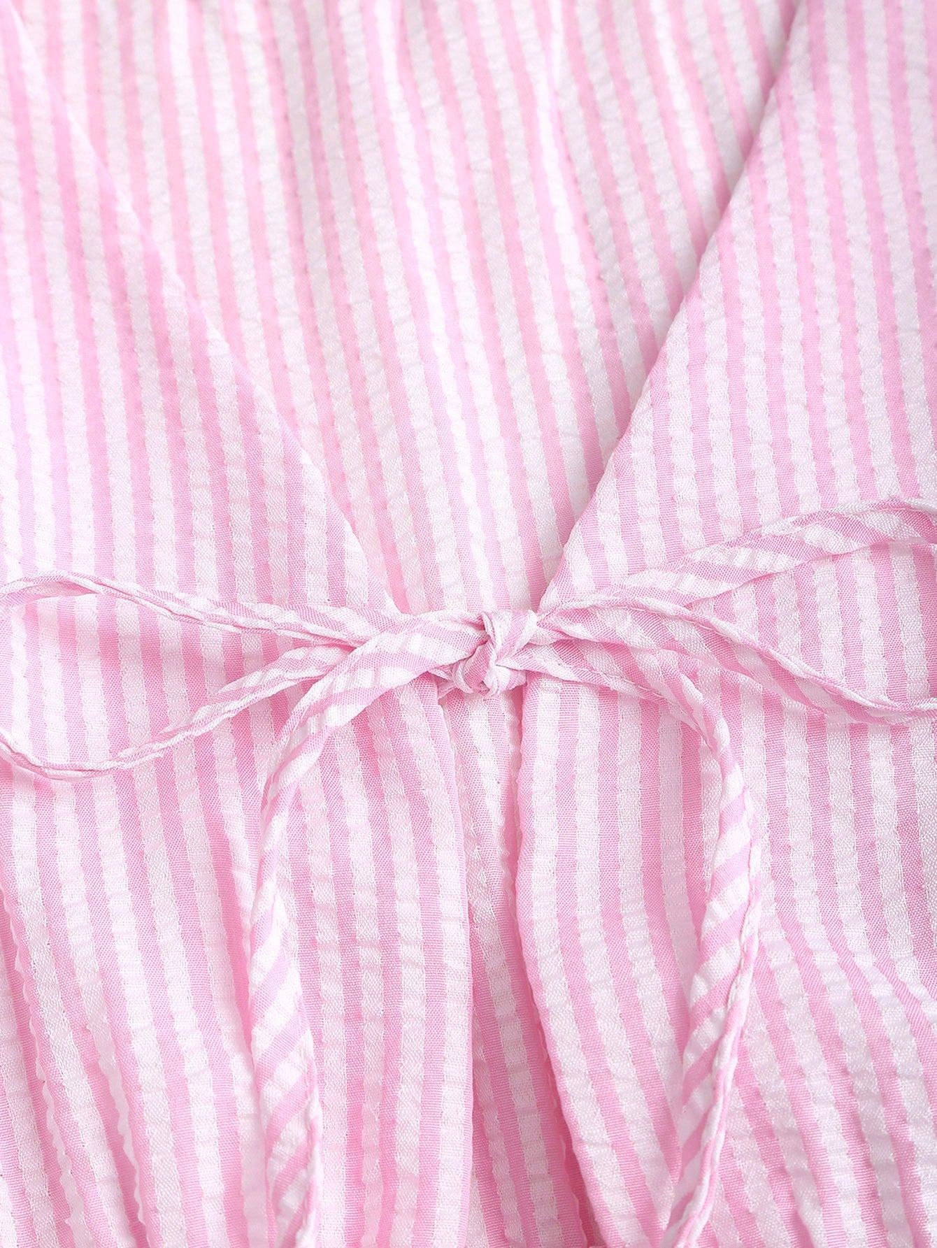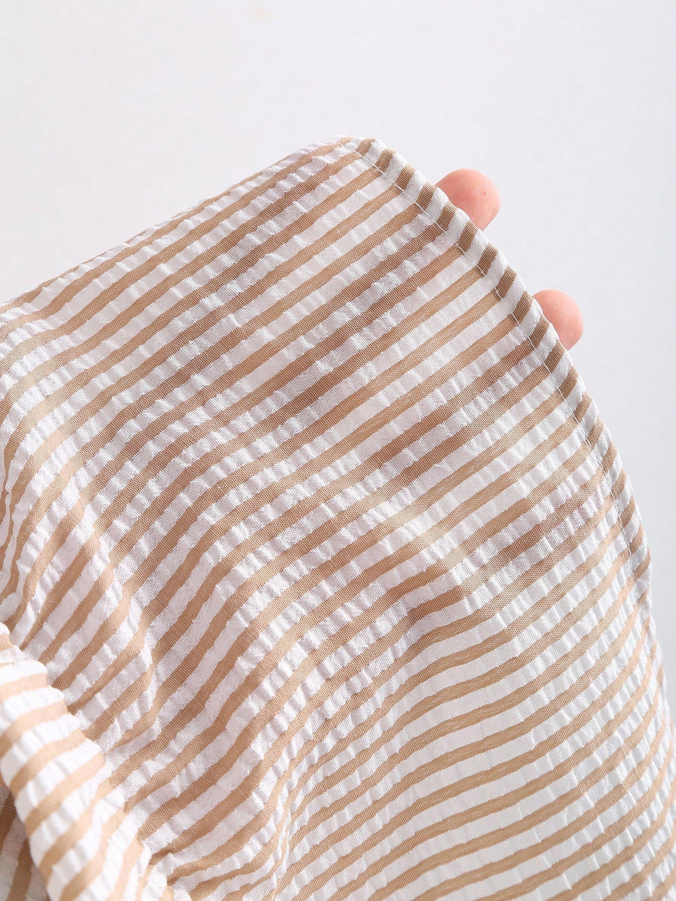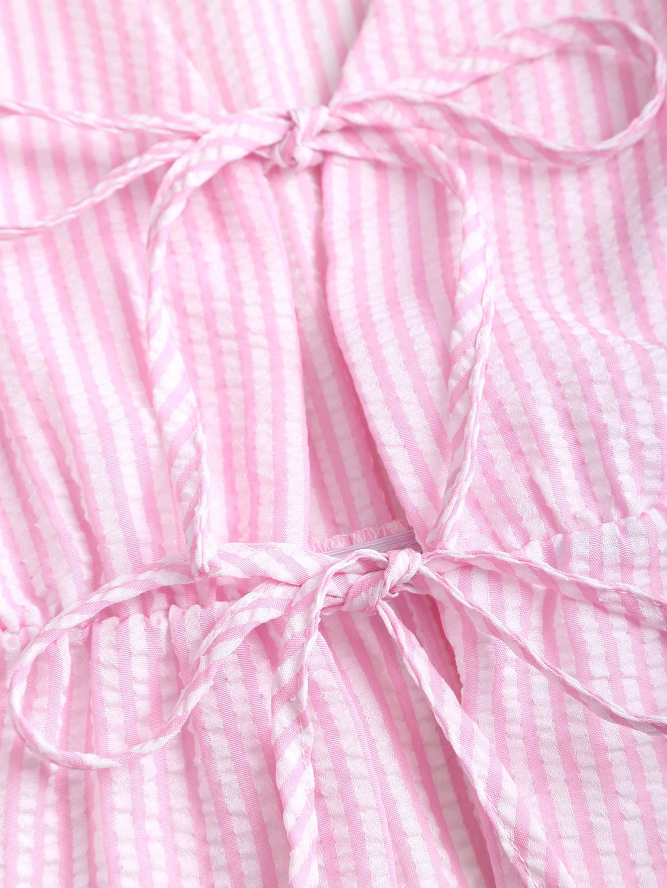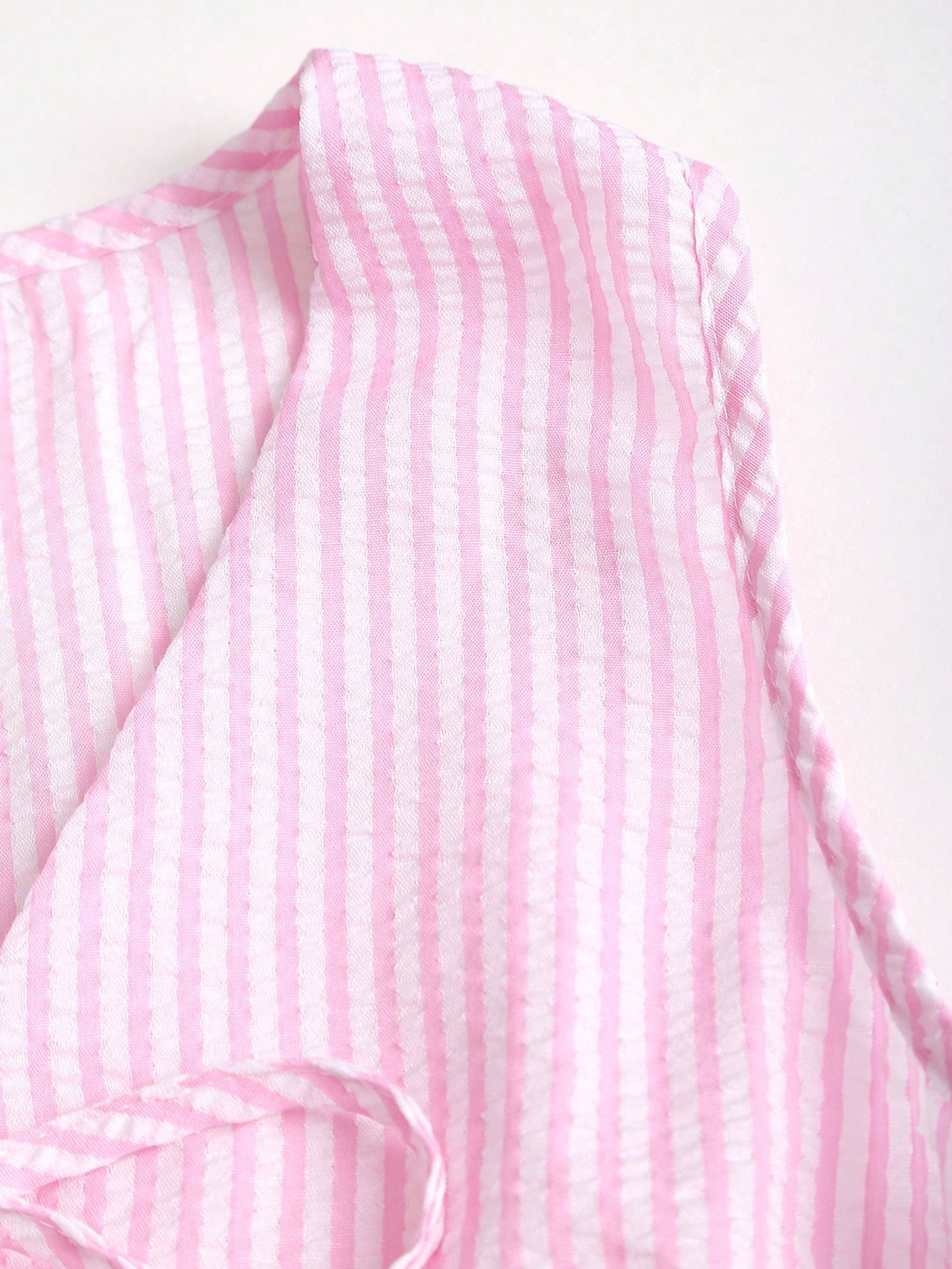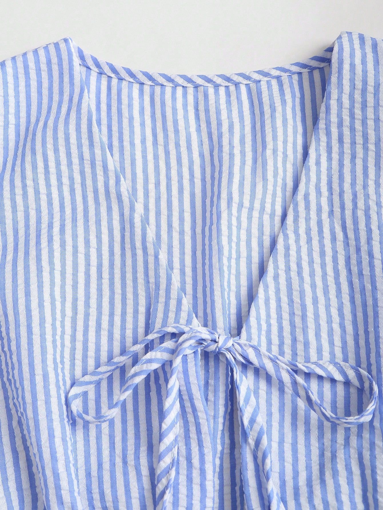 新款舒适高级感条纹宽松系带上衣休闲两件套百搭长袖甜美时尚套装