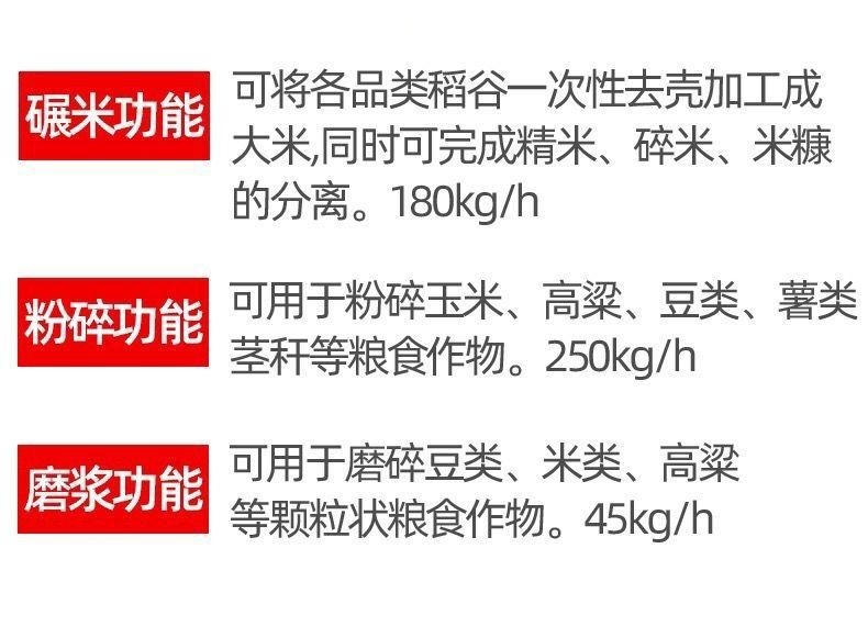 产品规格 40型单碾米机【大功率电机】,40型单碾米机【大功率铜芯电机】,40型单碾米机【三相全铜电机】,40型单碾米机【不含电机需自配】,碾米+磨粉两组合【不含电机需自配】,碾米+磨粉两组合【大功率电机】,碾米+磨粉两组合【大功率铜芯电机】,碾米+磨粉两组合【三相全铜电机】,碾米磨粉磨浆三组合【不含电机需自配】,碾米磨粉磨浆三组合【大功率电机】,碾米磨粉磨浆三组合【大功率铜芯电机】,碾米磨粉磨浆三组合【三相全铜电机】,碾米+粉碎+振动筛【不含电机需自配】,碾米+粉碎+振动筛【大功率电机】,碾米+粉碎+振动筛【大功率铜芯电机】,碾米+粉碎+振动筛【三相全铜电机】,碾米+粉碎+磨浆+振动筛【不含电机需自配】,碾米+粉碎+磨浆+振动筛【大功率电机】,碾米+粉碎+磨浆+振动筛【大功率铜芯电机】,碾米+粉碎+磨浆+振动筛【三相全铜电机】