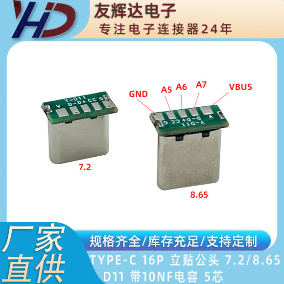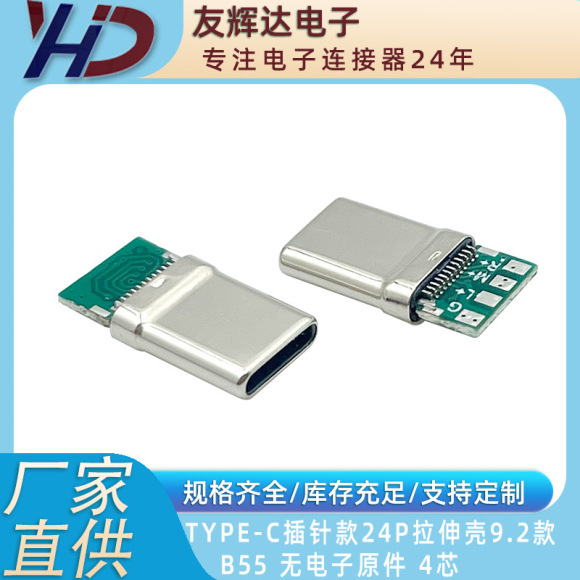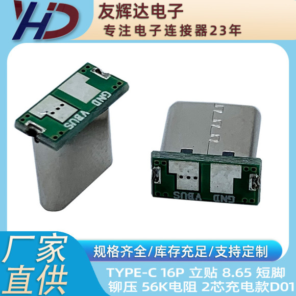 TYPE-C16P オス型 7.2mm 立型リベット圧着シェル ボード付き D0356K 抵抗4芯 データタイプコネクタ USB