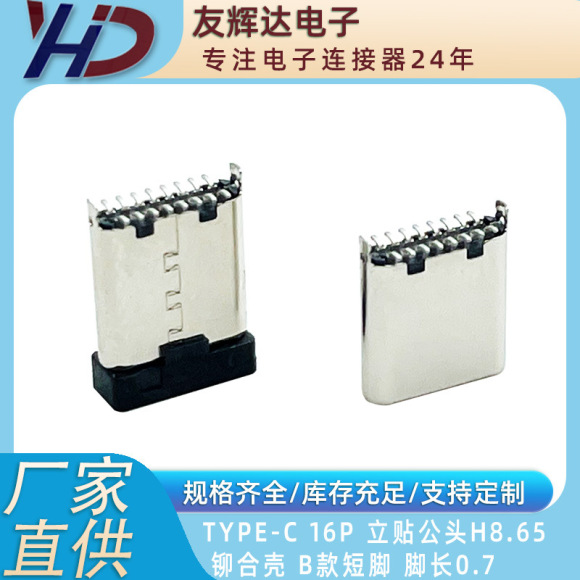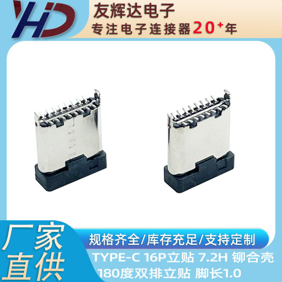 Type-c 16P 公头 立贴 7.2 铆压壳 短脚 脚长1.0 180度双排